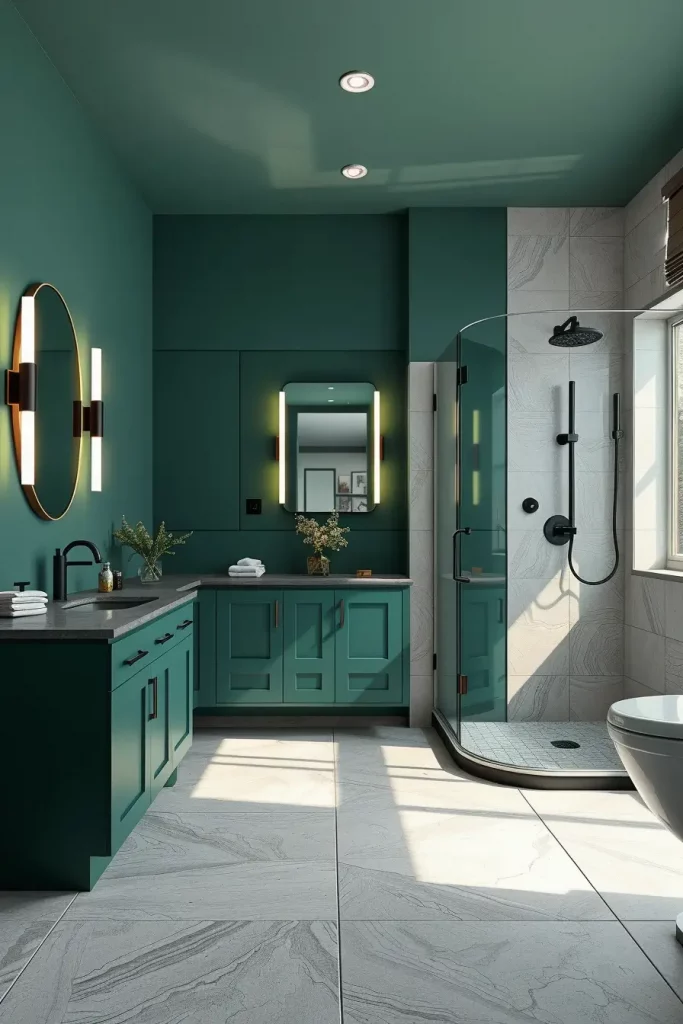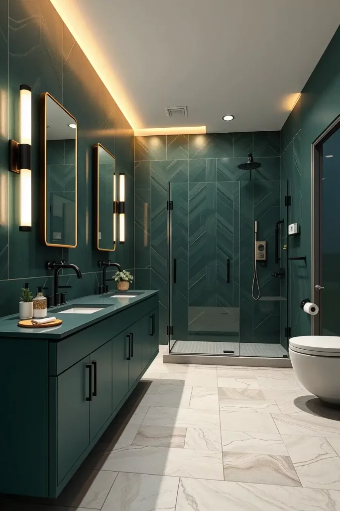 Contemporary Bathrooms Forest Green Color with Sharp Lines