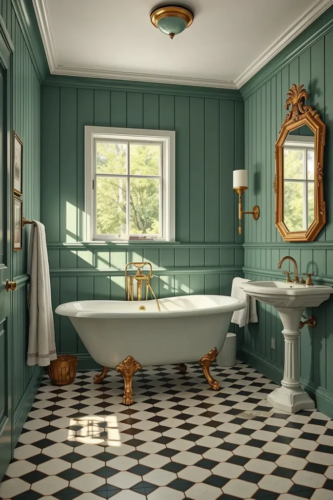 The reason why I appreciate this look is because of its adaptability. It doesn’t rely on expensive materials, yet it has a feeling of richness and depth. Joanna Gaines popularized shiplap for a reason; it adds accessible texture to any area. When matched with a deep hue such as forest green, it beautifully balances rustic and modern features. If your bathroom is on the smaller side, I suggest keeping the ceiling white so the room isn’t overwhelmed by color.