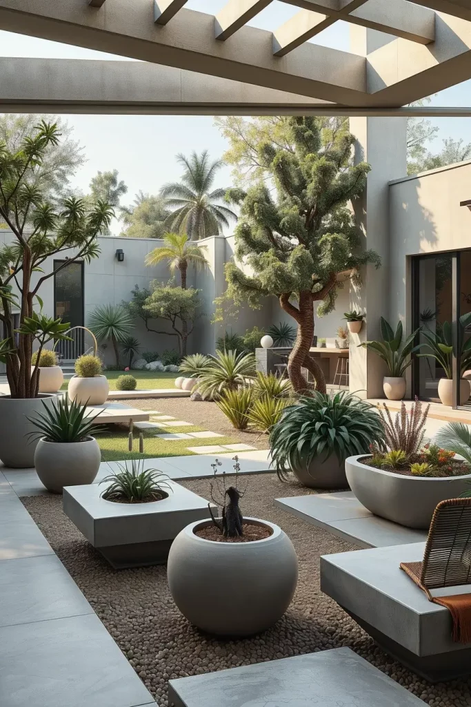 When I think about futuristic garden inspiration ideas for 2026, clean geometry immediately comes to mind. These gardens are defined by sharp angles, seamless transitions, and a sense of forward-thinking design that feels intentional rather than experimental. I design such spaces to feel calm and advanced at the same time, using layout precision to make the garden both visually striking and easy to navigate.