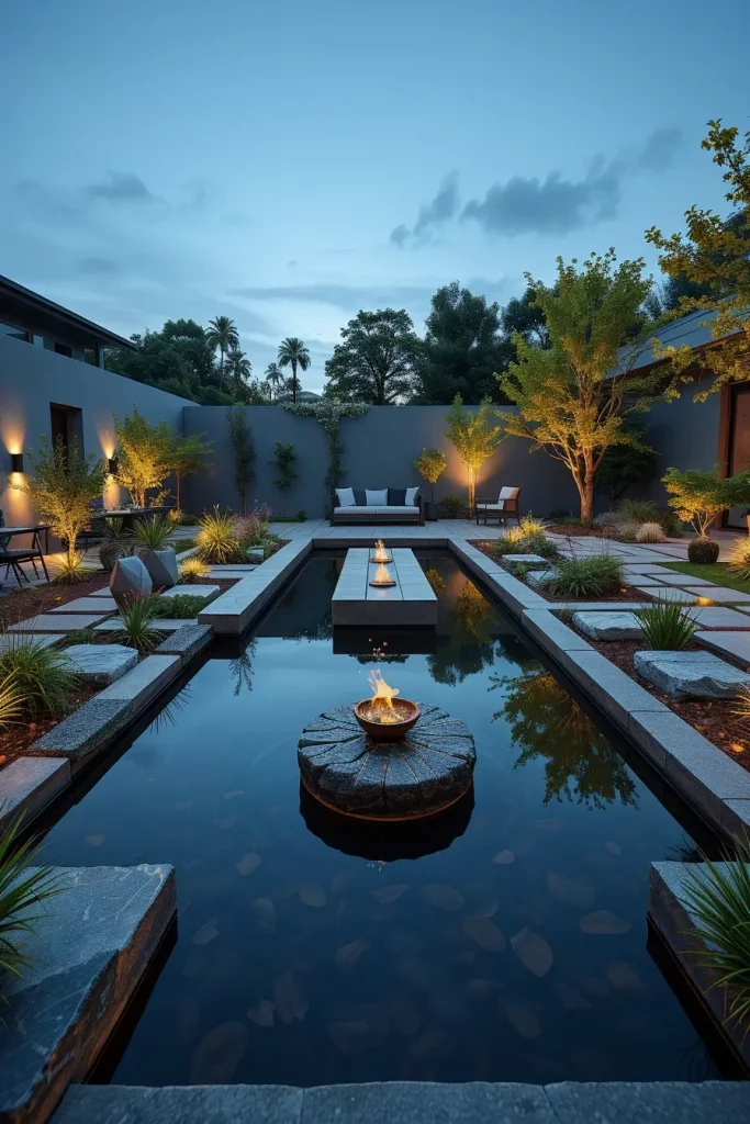 To enhance these water-focused gardens further, I suggest adding underwater lighting or subtle edge illumination. This detail extends the impact of the water feature into the evening and reinforces the modern aesthetic.