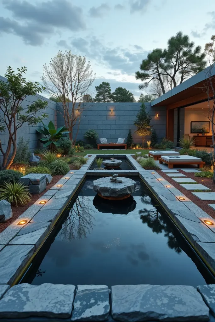 Water features remain a defining element of modern garden inspiration ideas in 2026, but their design has become far more refined and architectural. I favor clean-lined reflecting pools, narrow rills, and minimalist fountains that integrate seamlessly into the overall landscape rather than dominating it.
