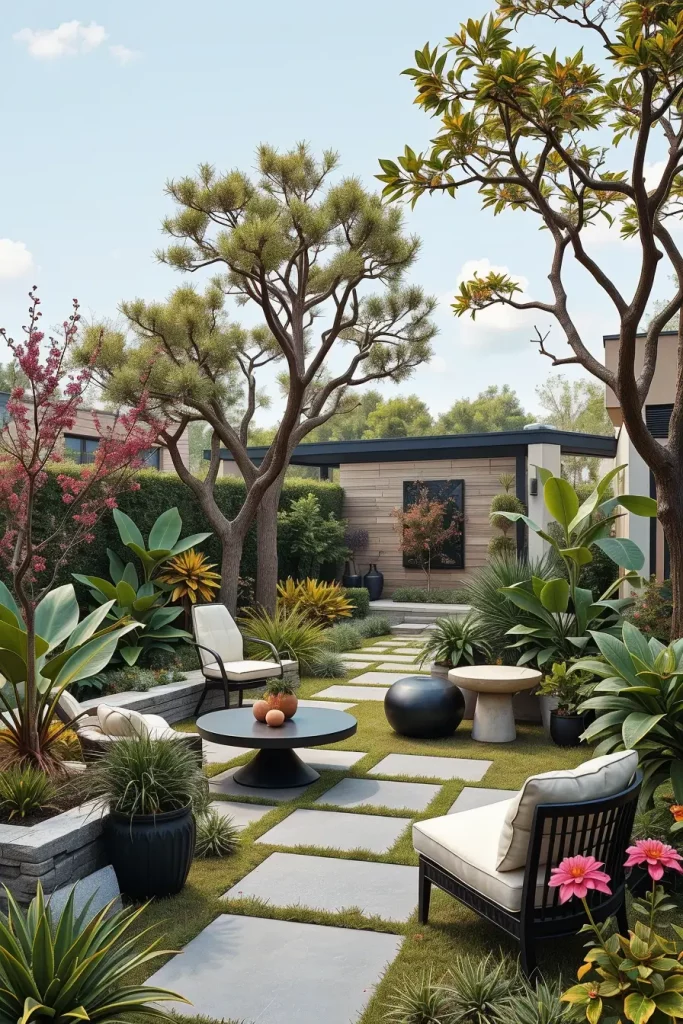 To elevate this concept further, I would introduce seasonal planting strategies. This ensures the garden remains dynamic throughout the year while maintaining its stylish and cohesive appearance.