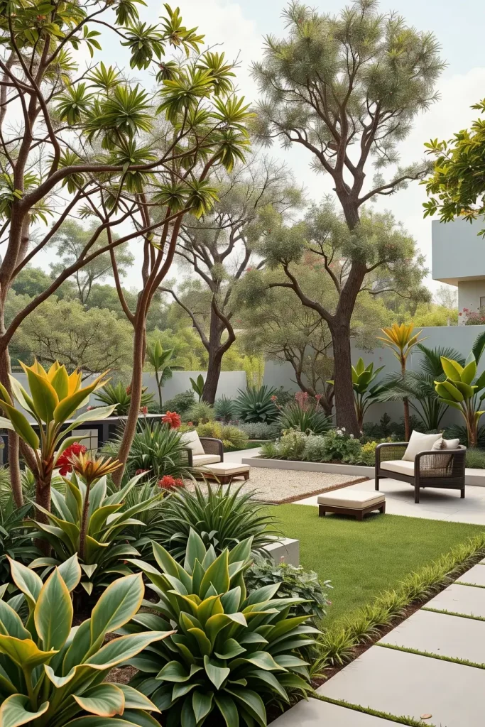 I carefully combine ground covers, mid-height shrubs, and taller trees to achieve a natural rhythm. Raised planters, green walls, and trellises allow greenery to interact with furniture and architectural elements. Seating areas feel more intimate when surrounded by layered planting, enhancing both comfort and privacy.