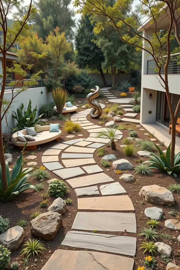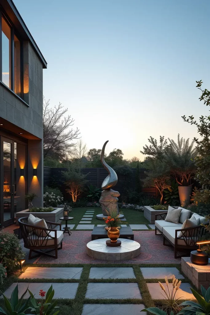 What I would add to this section is intentional lighting for the sculptural element. Proper illumination ensures it remains impactful after dark, extending the garden’s visual appeal into the evening hours.