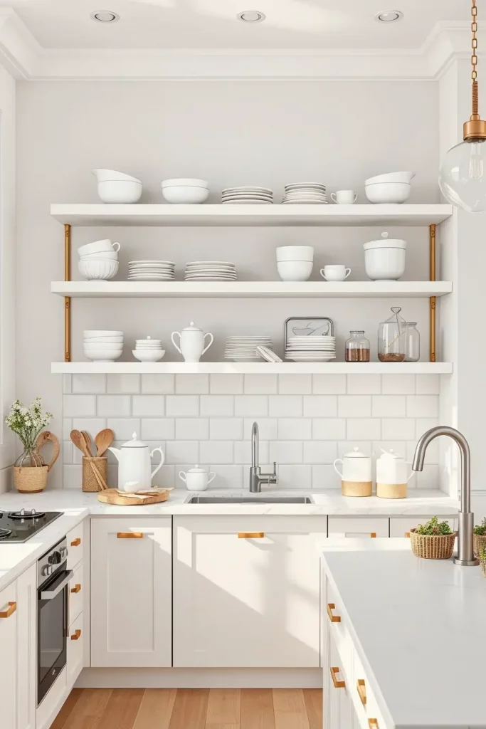 Styled Shelves For White Classic Kitchen