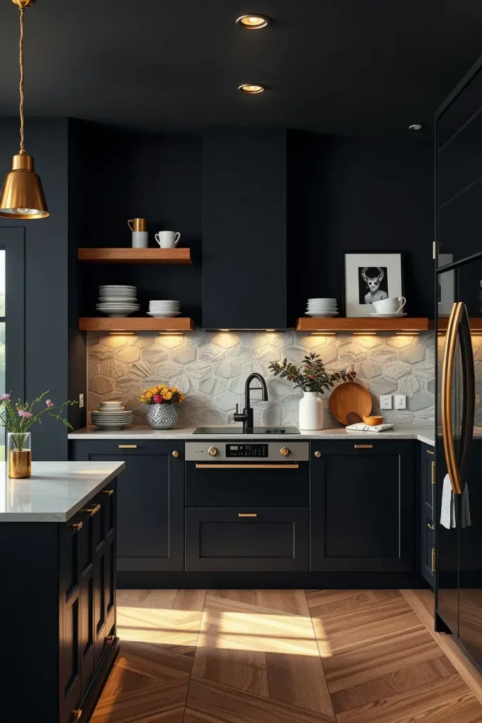 A design choice I especially like is integrating natural wood elements into modern black kitchens. Interior designers, like Emily Henderson, recommend darker tones and organic textures for making these spaces feel more inviting. This approach has been particularly rewarding in several of my client projects.