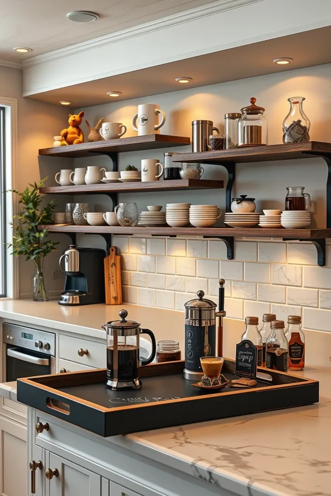 Transforming Kitchen Shelves into Coffee Bar Vignettes