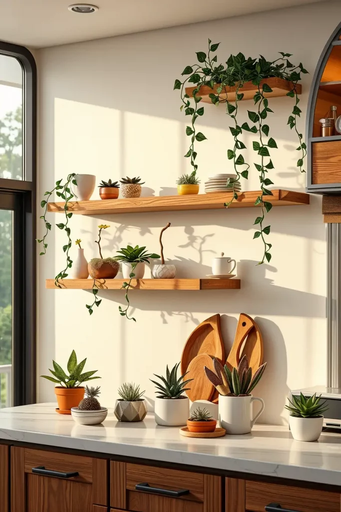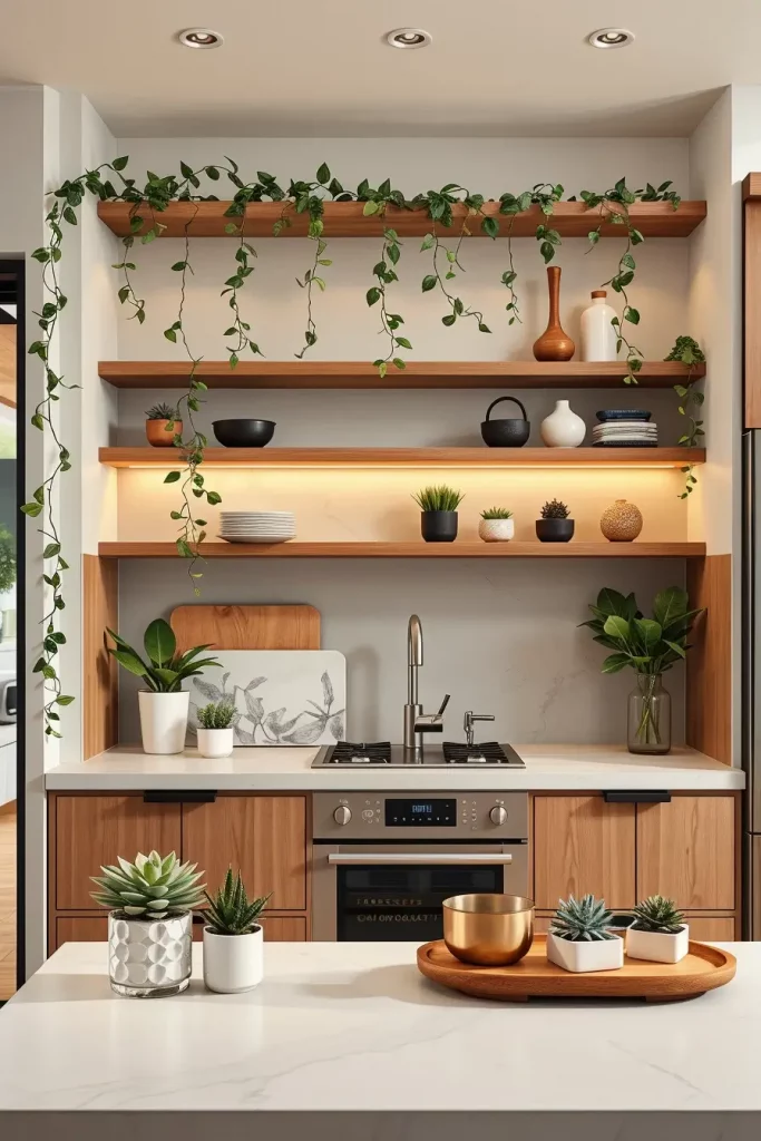 How To Add Greenery With Faux Plants On Kitchen Shelves