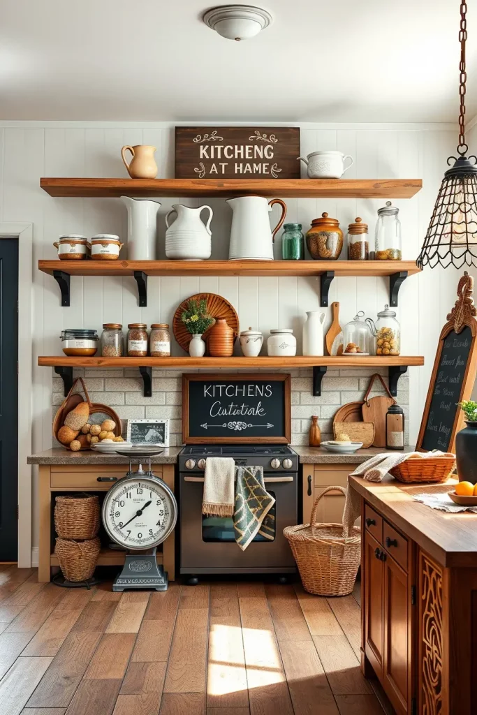 Rustic Wood Shelves With Vintage Kitchen Decor