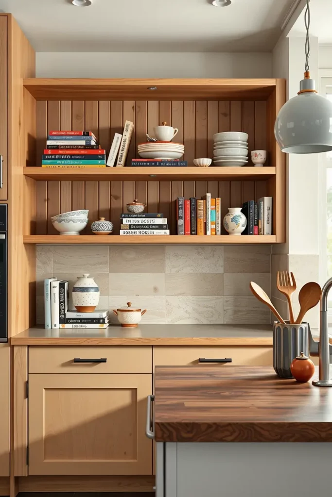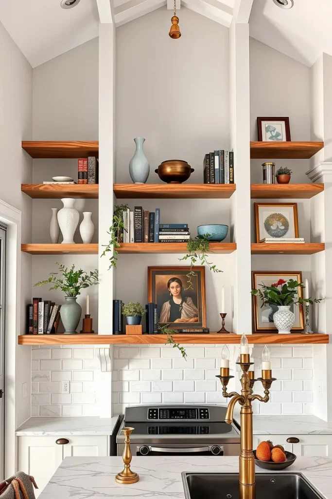 One of the easiest ways to give a personal touch to a kitchen is by adding a personal touch and it really makes a difference if a person goes above and beyond by placing personal keepsakes around or on the shelves. In my experience, the kitchen with a curated, lived-in look is a lot more inviting and welcoming than those that do not. This works particularly well for open concept kitchens where every corner is in sight. Shelves cease to be just a place for keeping the items and rather become a canvas for one’s imagination. They don’t just serve a functional purpose, but also tell the stories of the people who use the kitchen. It’s a storytelling surface—an intersection of creativity and practicality.