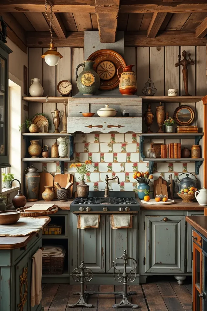 I as well adore the feel it brings when rustic wood shelves meet vintage kitchen décor. In many cases, I use this design in traditional or cottage kitchens where the personality and texture is given more importance than minimalism.