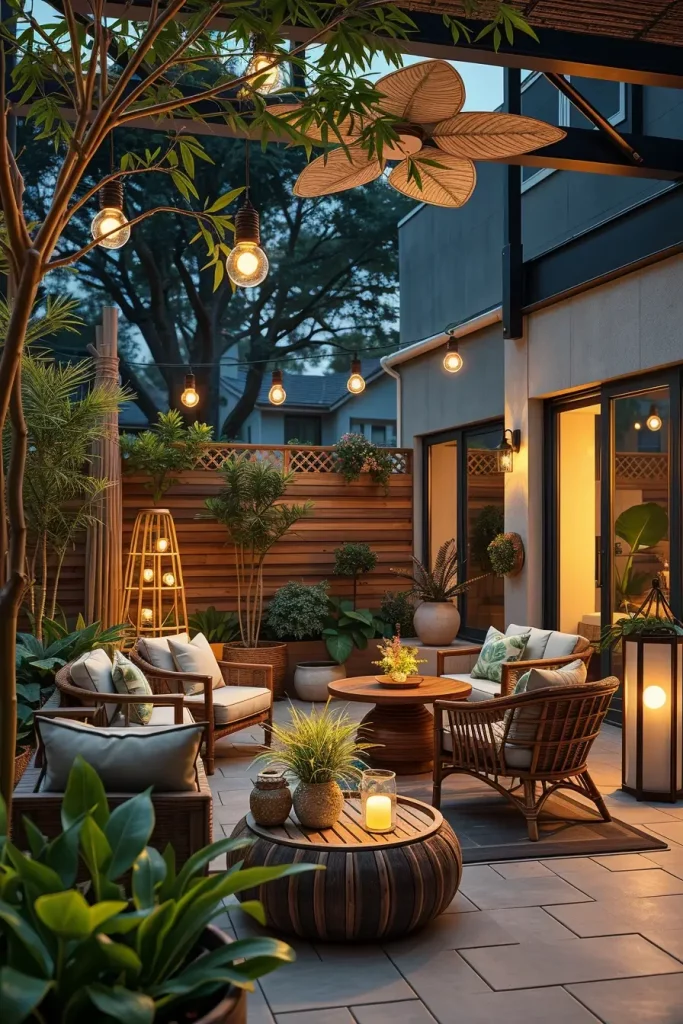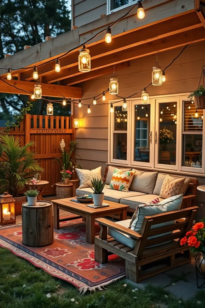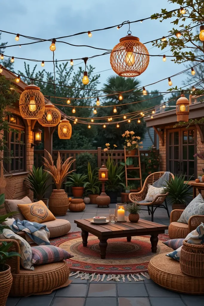 For a more relaxed and artistic atmosphere, boho lighting is an essential part of outdoor lighting ideas patio 2026. This style focuses on warmth, texture, and a layered, slightly eclectic look. It’s ideal for creating a cozy and inviting outdoor retreat.
