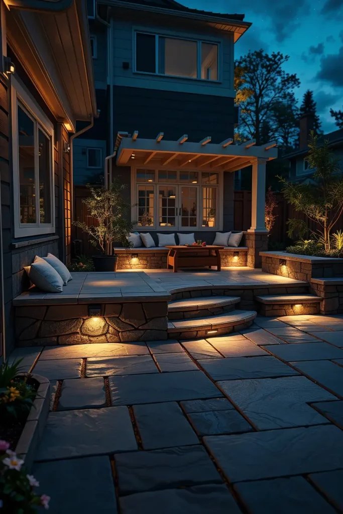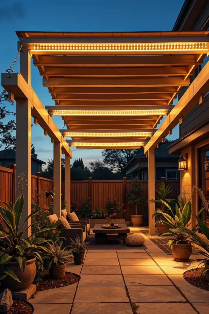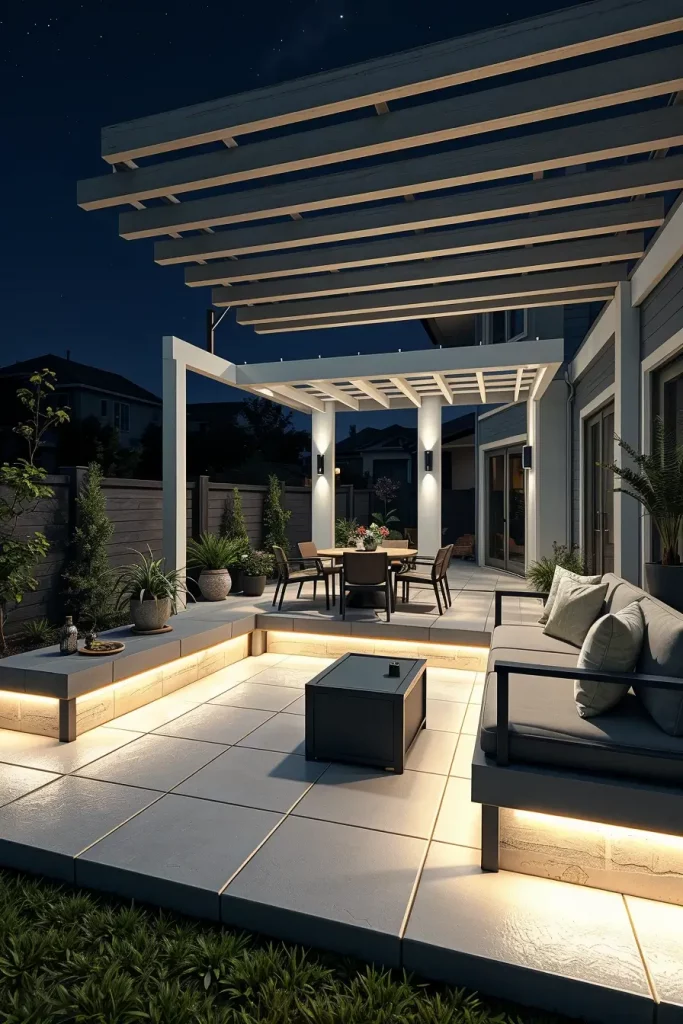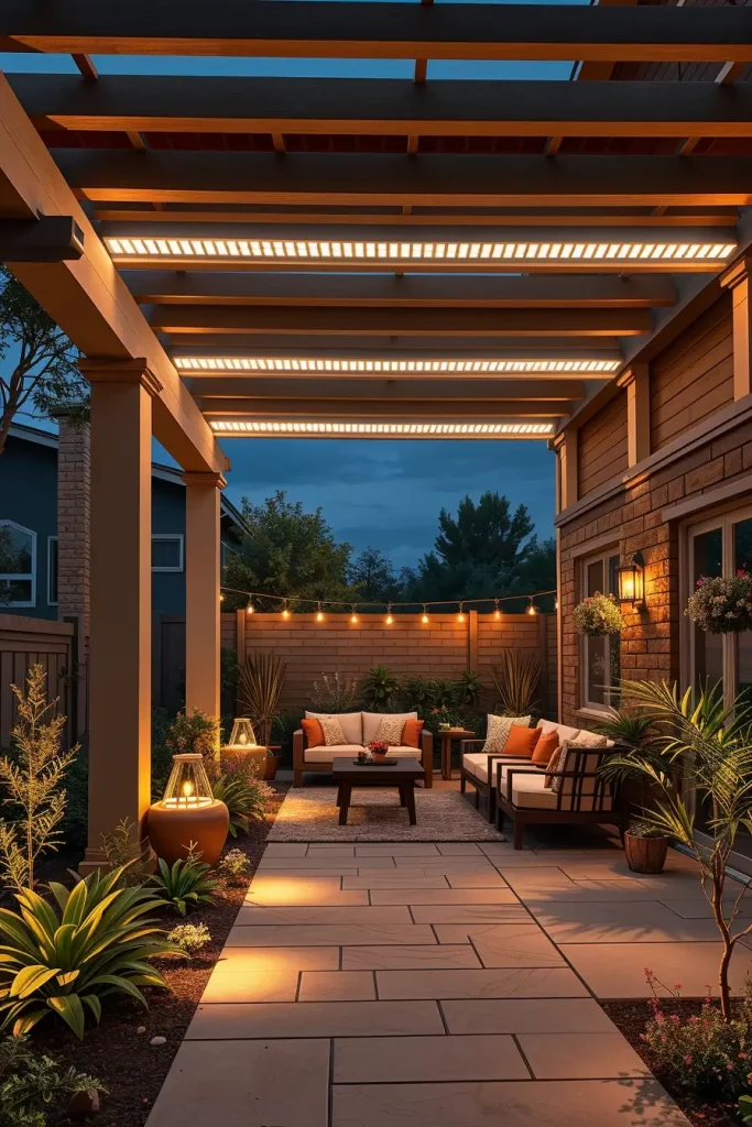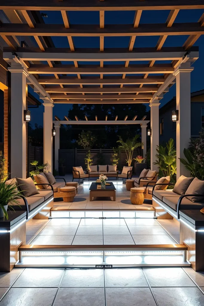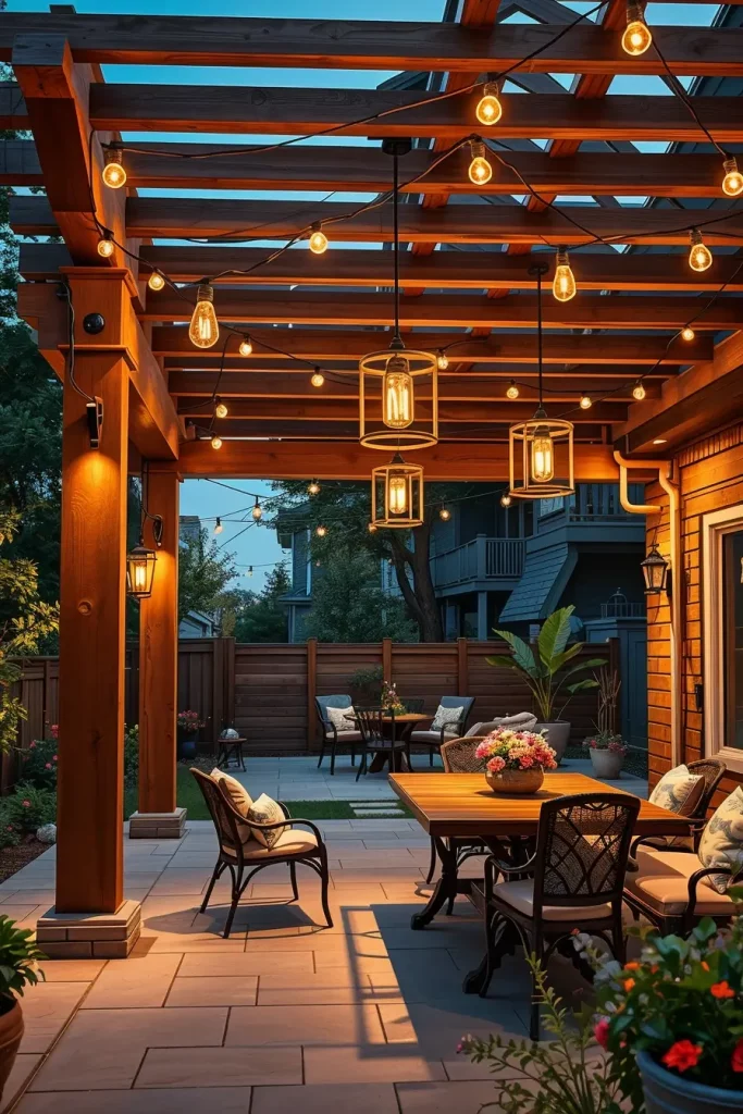 Pergolas offer an excellent structure for layered outdoor lighting ideas patio 2026, and I always take full advantage of their architectural potential. Lighting integrated into pergolas can completely transform a covered patio into a functional and inviting outdoor room.