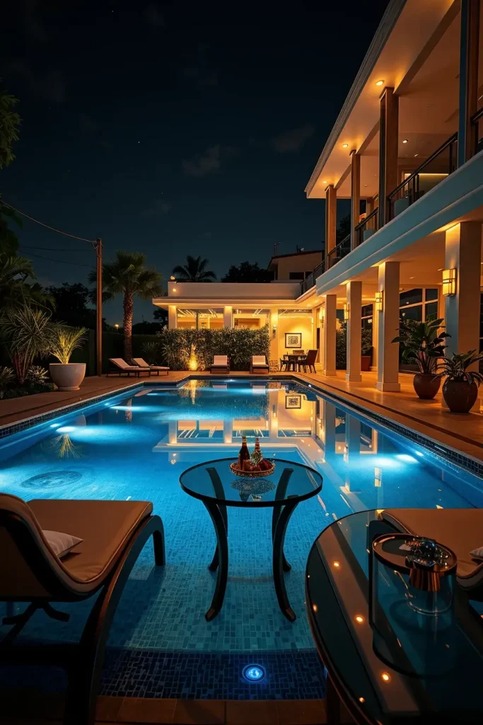 Designing lighting around a poolside patio requires a balance between elegance and safety. I approach this by using layered lighting that enhances the reflective qualities of water while ensuring visibility. This is one of the most striking outdoor lighting ideas patio 2026 for creating a luxurious outdoor space.