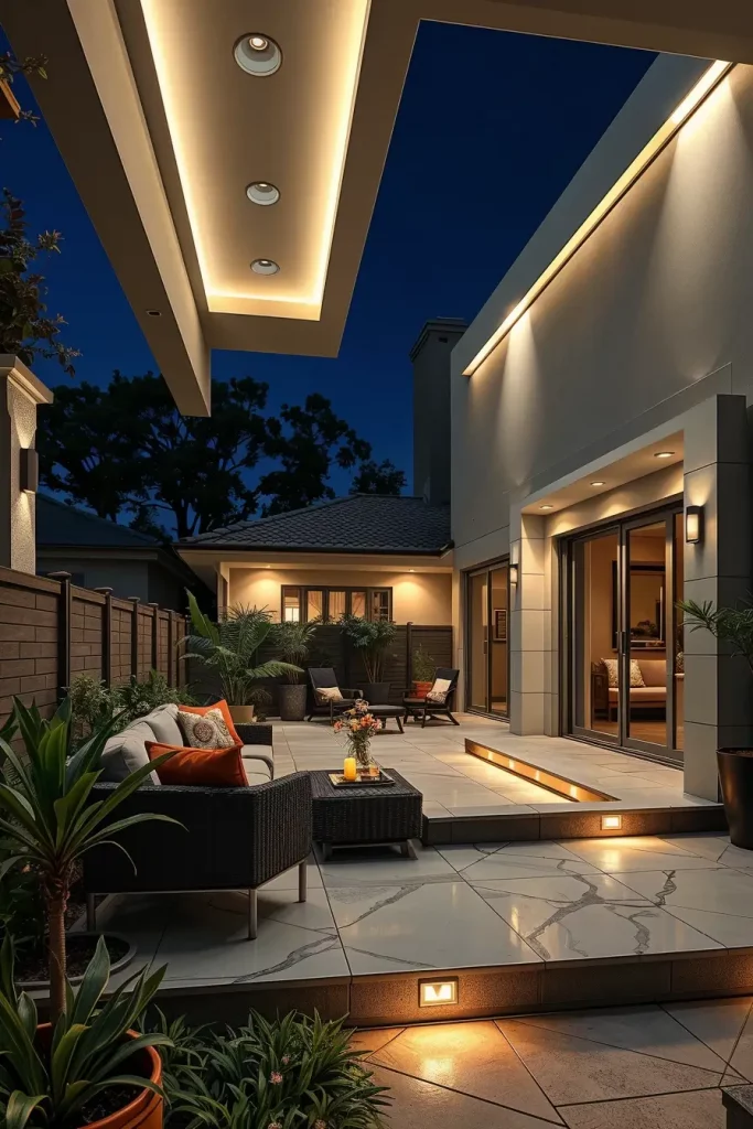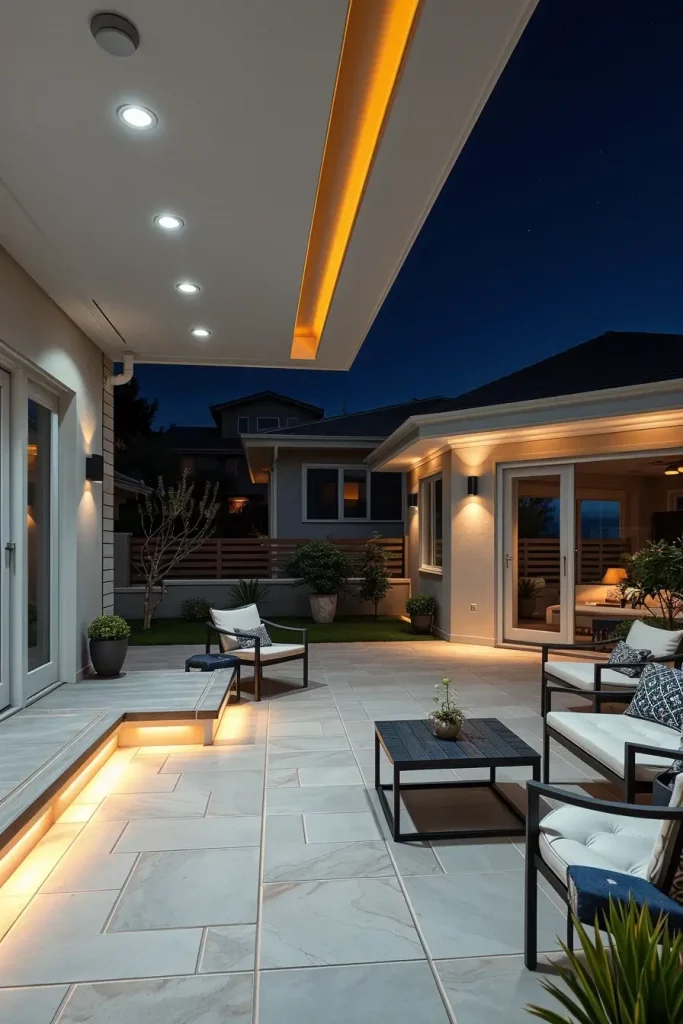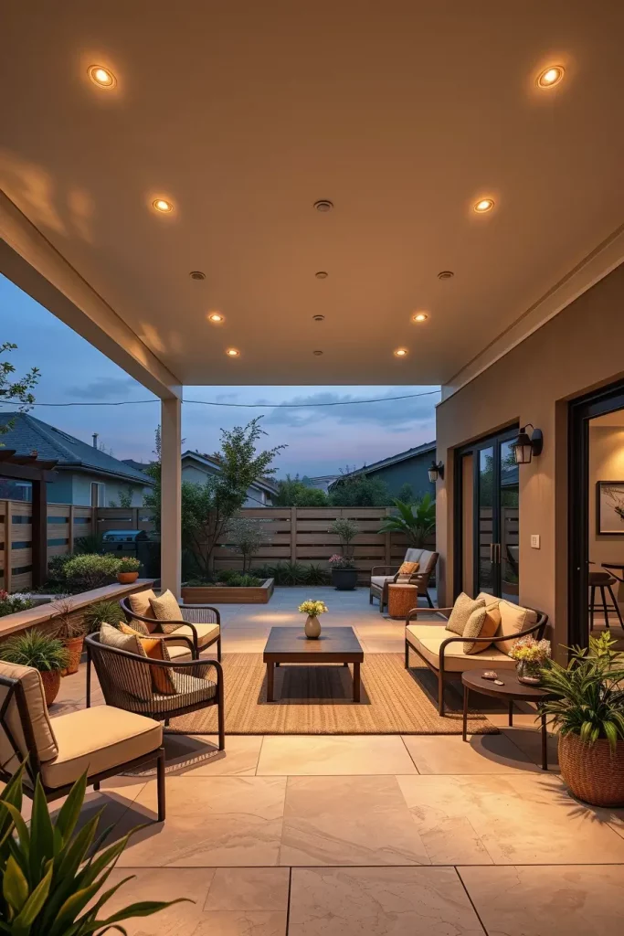 From my experience, recessed lighting is particularly useful in smaller patios where space is limited. It keeps the design streamlined while still providing sufficient brightness. Many contemporary outdoor designs rely on this approach to maintain a polished and cohesive look.
