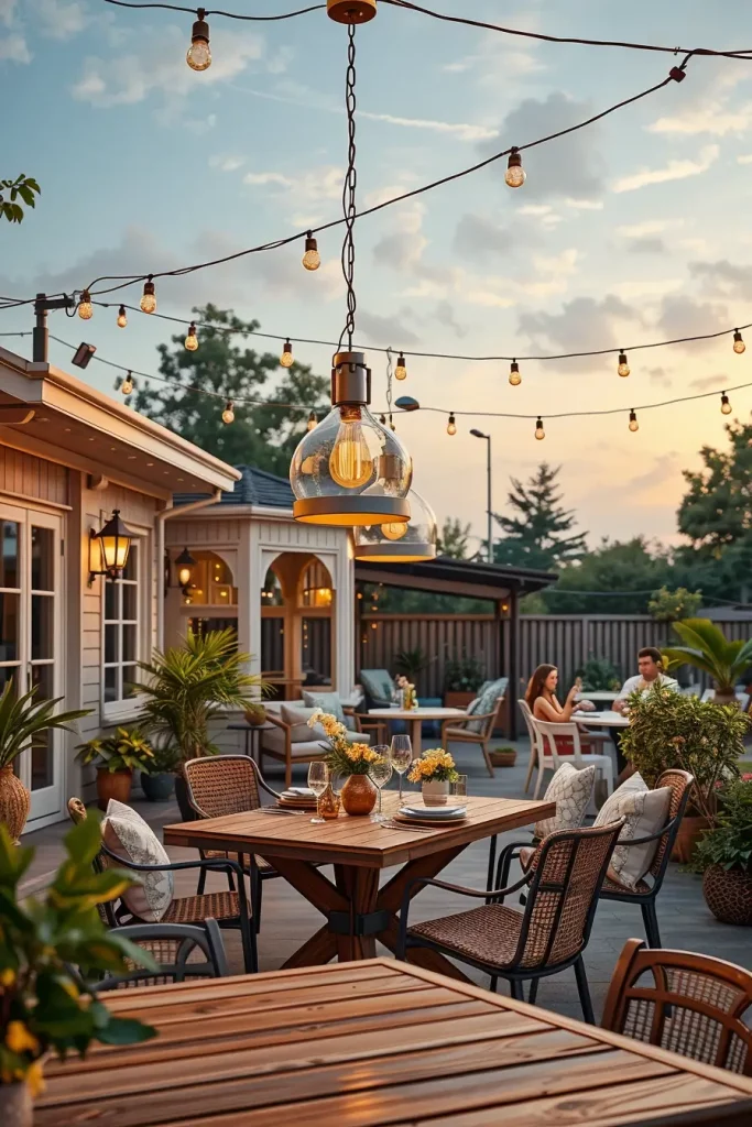 When designing dining zones, I often incorporate statement pendant lights as part of outdoor lighting ideas patio 2026. These fixtures act as both a light source and a focal point, helping to visually anchor the dining area. I find that a well-chosen pendant can instantly elevate the overall design of a patio.