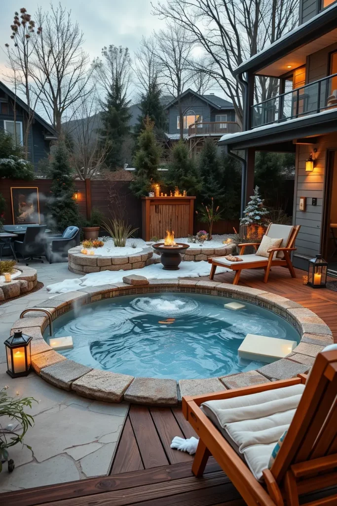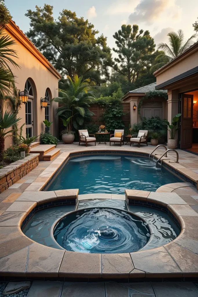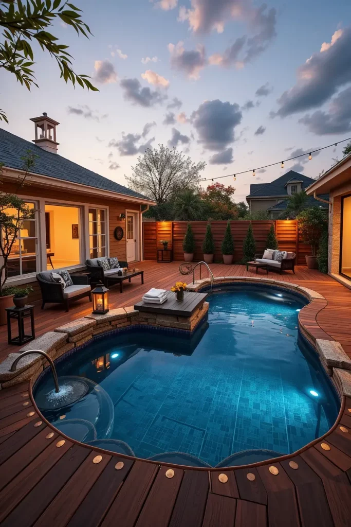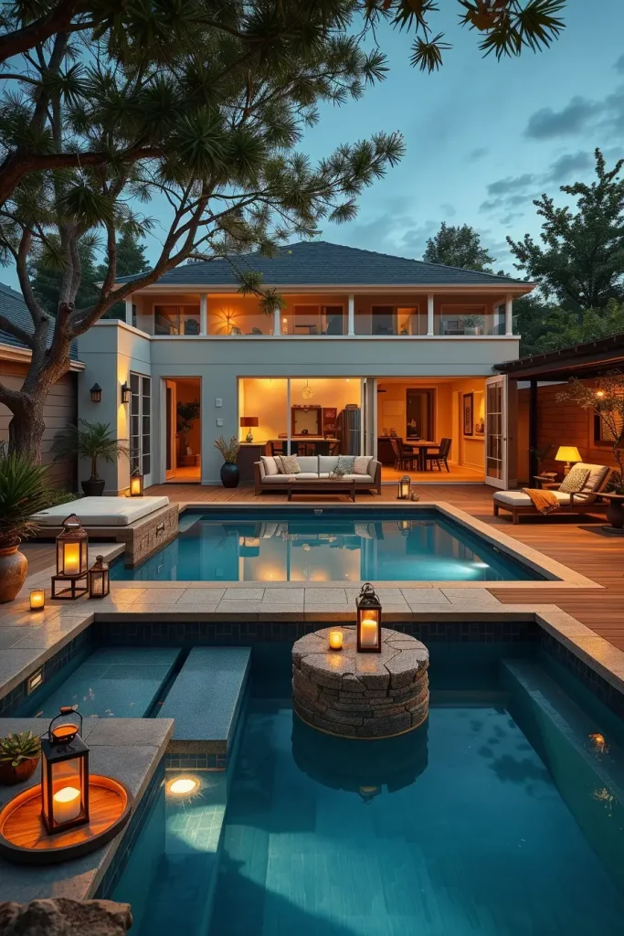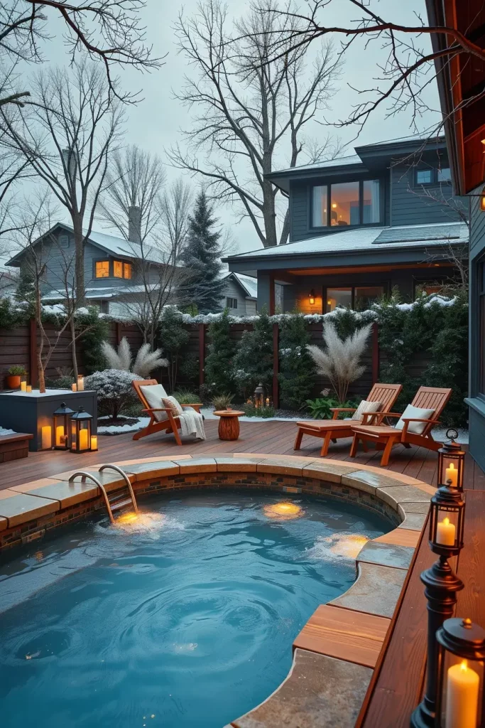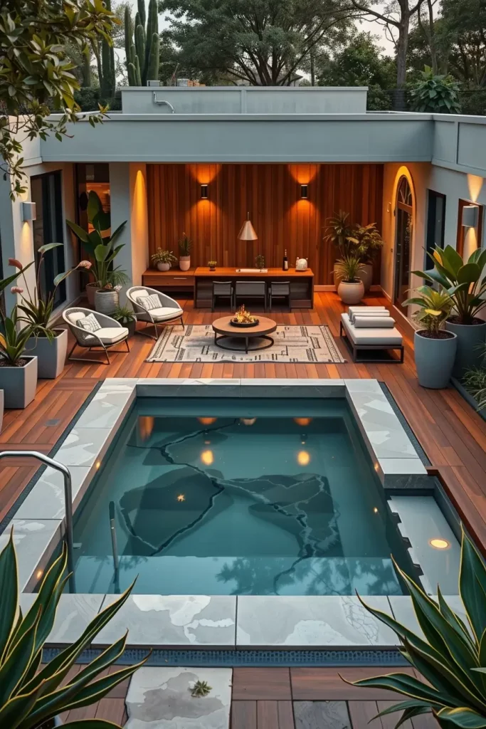 Personally, I find that the most successful stylish plunge pools combine comfort with subtle luxury. Publications like Better Homes & Gardens frequently highlight the importance of layered outdoor lighting and natural textures in spa-inspired backyards. I apply this advice by incorporating lantern lighting, decorative planters, and privacy screens around heated plunge pools.