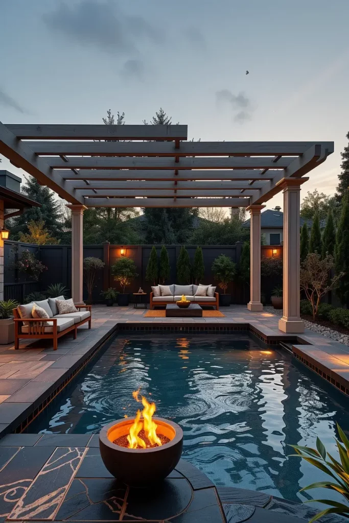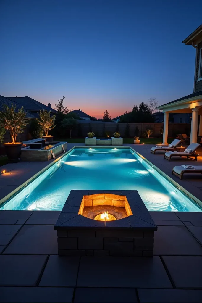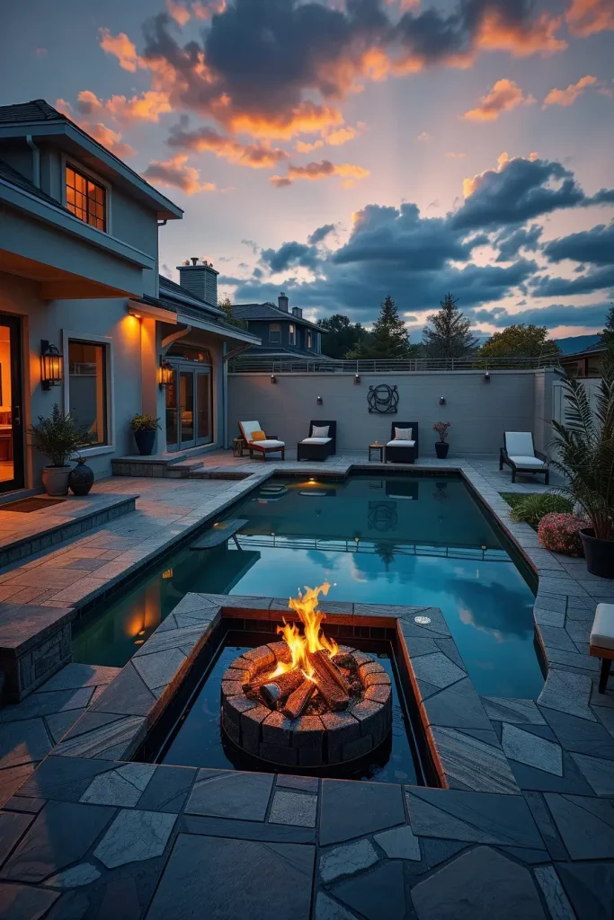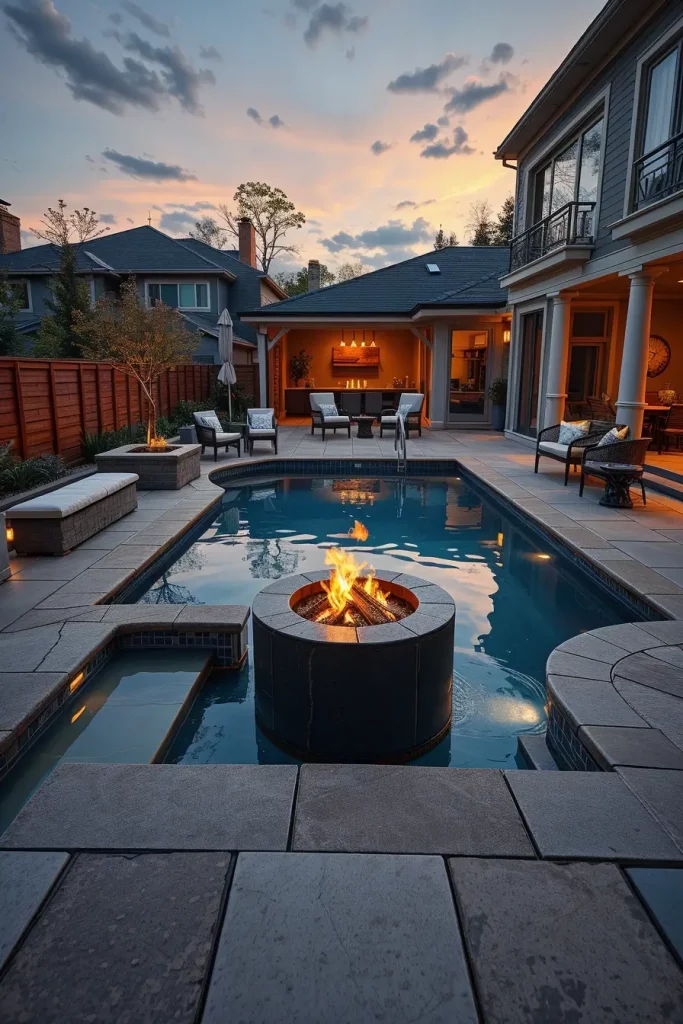 To enhance this section further, I would include safety considerations such as proper spacing between the fire pit and pool edge, as well as durable heat-resistant materials for surrounding furniture.