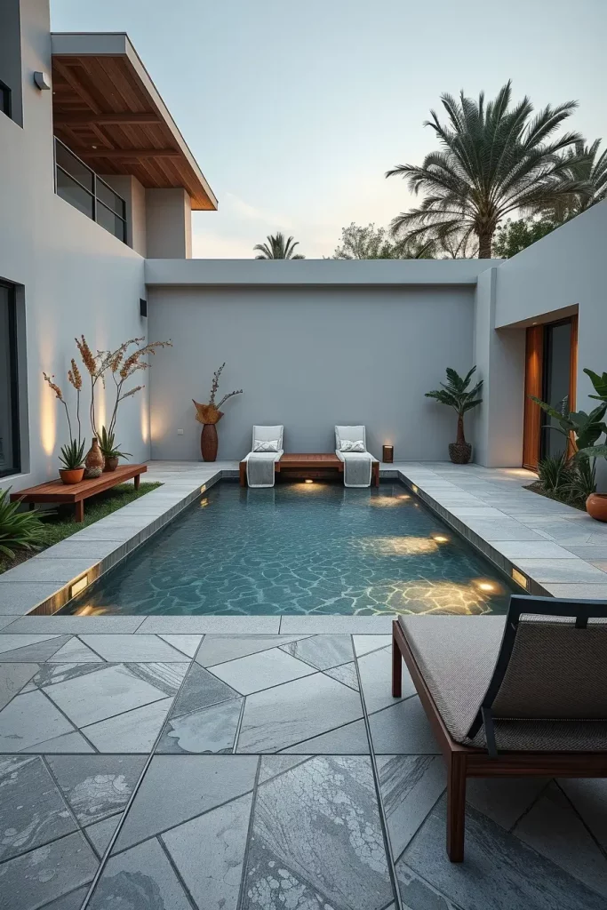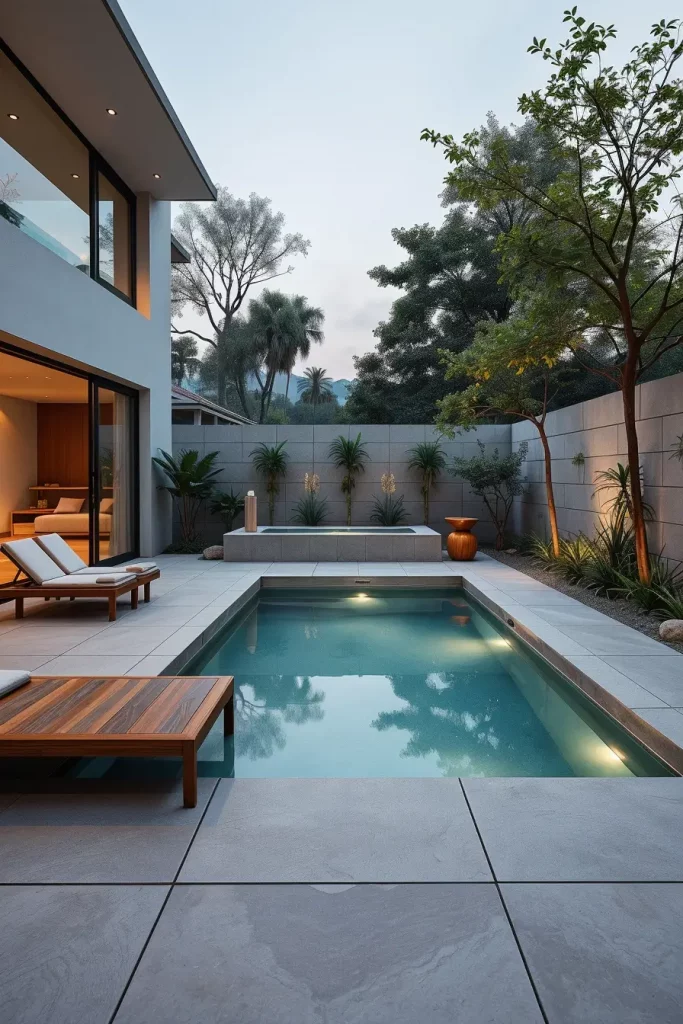 Personally, I believe the success of modern plunge pool designs like this lies in restraint. Publications such as Dwell frequently highlight how minimalism can create deeper visual impact. When designing Zen-inspired pools, I focus on proportion, symmetry, and natural textures rather than decorative complexity.