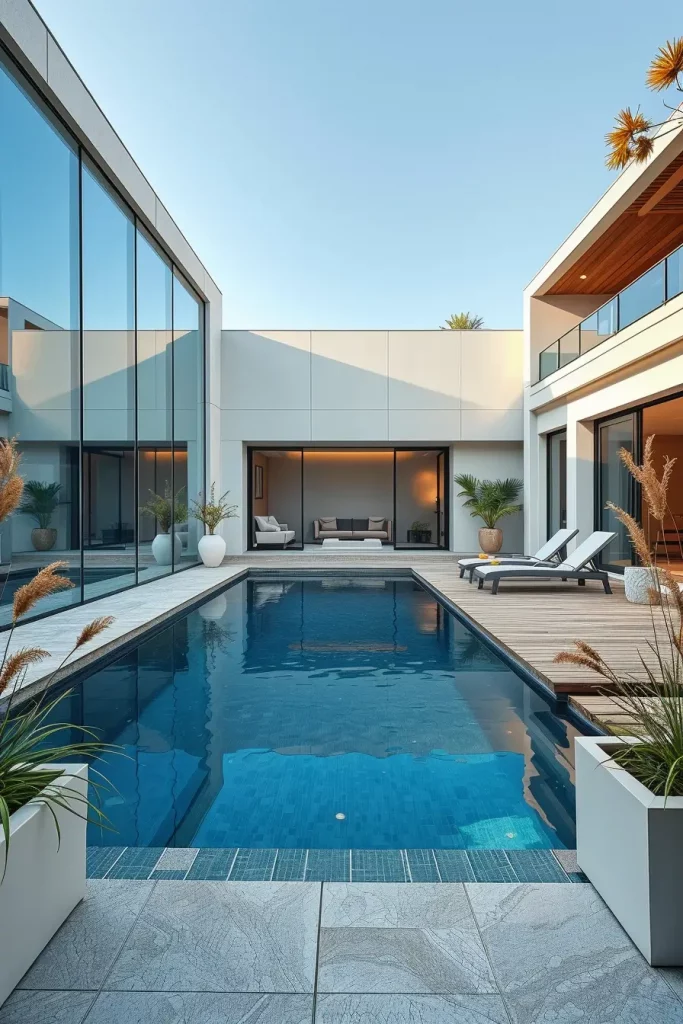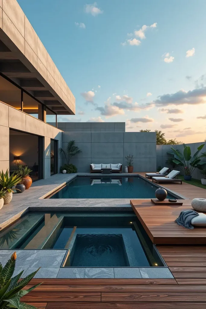If something is missing in many minimalist designs, it is texture contrast. I like to introduce warm wood decking, stone accents, or textured walls to add visual depth while maintaining the clean design language.