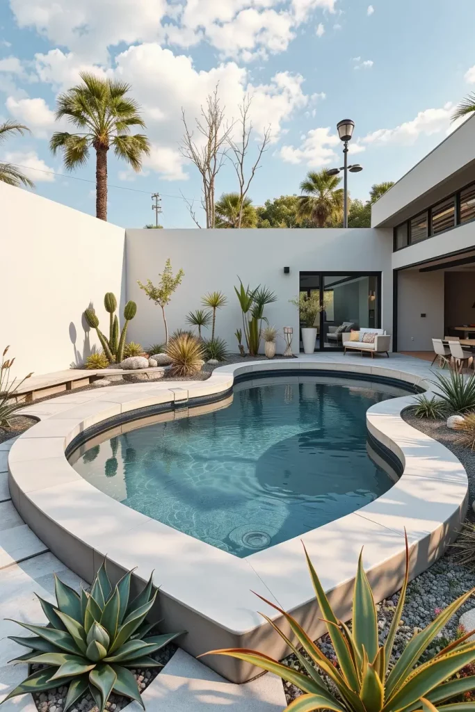 To strengthen the design, I usually recommend integrating surrounding pathways, lighting accents, and sculptural plants like agave or ornamental grasses. These elements help frame the pool while maintaining a balanced, cohesive outdoor composition.