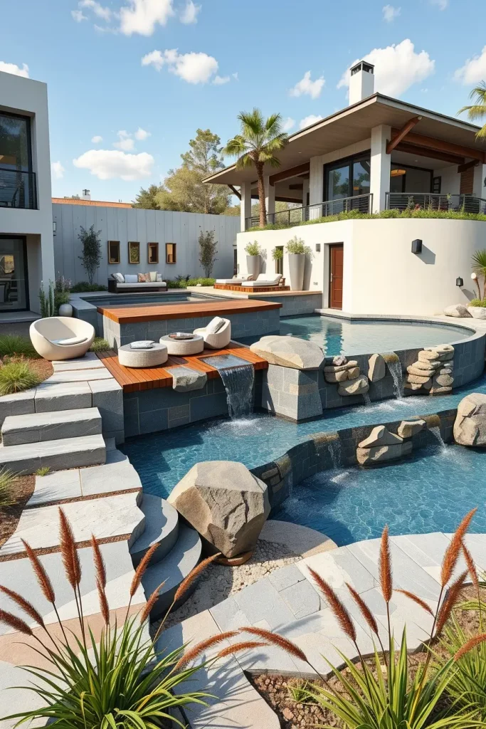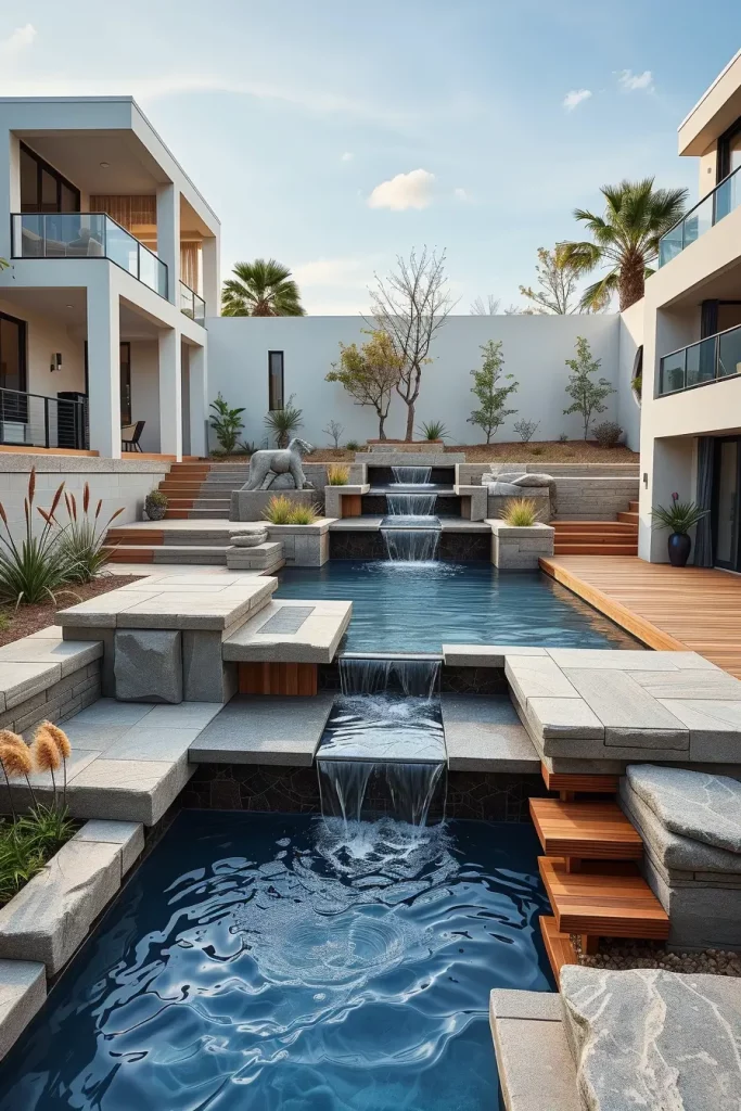 From my perspective, multi-level plunge pools are ideal for backyards with elevation changes. Landscape architects often highlight that tiered water features add depth and visual rhythm to outdoor environments. I have seen this concept transform even modest yards into highly architectural landscapes.