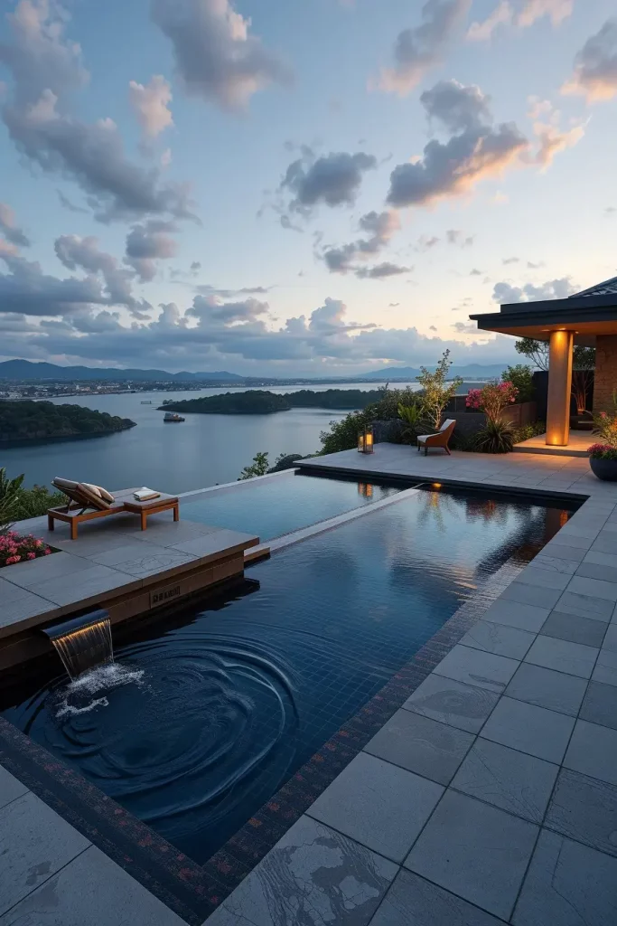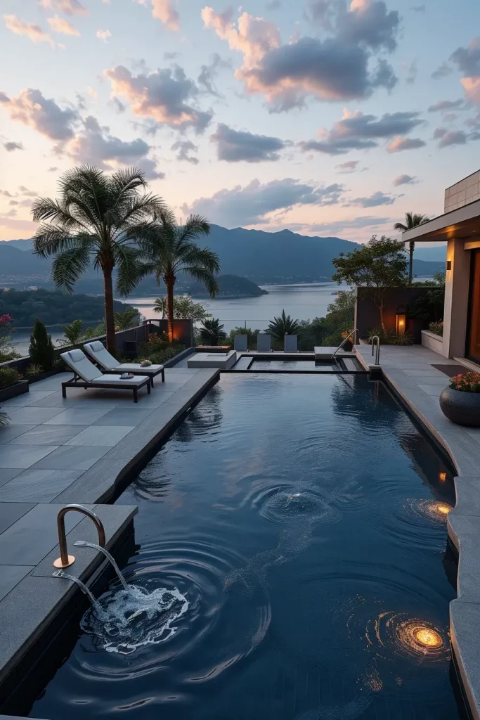 From my experience, creative plunge pools with dark tiles work particularly well in architectural homes. Interior designers featured in Architectural Digest often recommend limiting decorative elements so the pool surface becomes the visual centerpiece. I follow this advice by keeping surrounding materials simple and elegant.