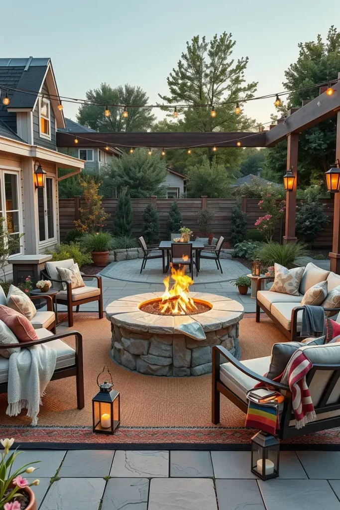 Personally, I always recommend adding layered textures around the seating area. Outdoor rugs, knitted throws, and weather-resistant pillows make the space feel like an outdoor living room. According to outdoor design experts frequently featured in Better Homes & Gardens, creating zones within the patio, such as a lounge area and dining space, helps the backyard feel larger and more functional.