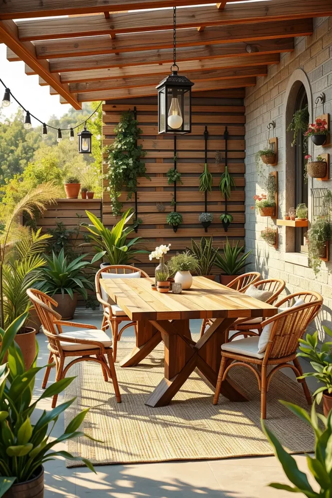 One trend I find particularly exciting in summer patio decor ideas 2026 is the use of vertical garden walls. These living walls transform ordinary patios into lush green environments while maximizing limited space. In modern patio decor, vertical greenery also serves as both decoration and a natural privacy screen.
