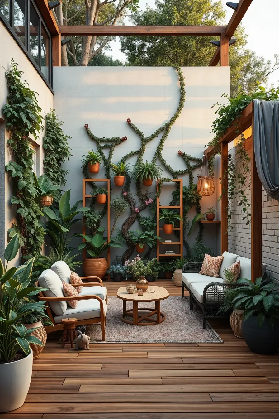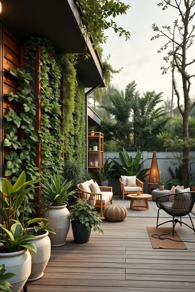 Summer Patio Decor With Vertical Garden Walls