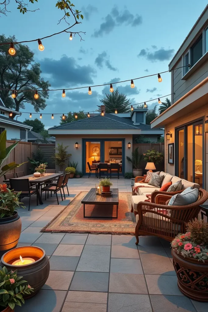 Romantic Patio Decor With String Lights And Soft Lighting