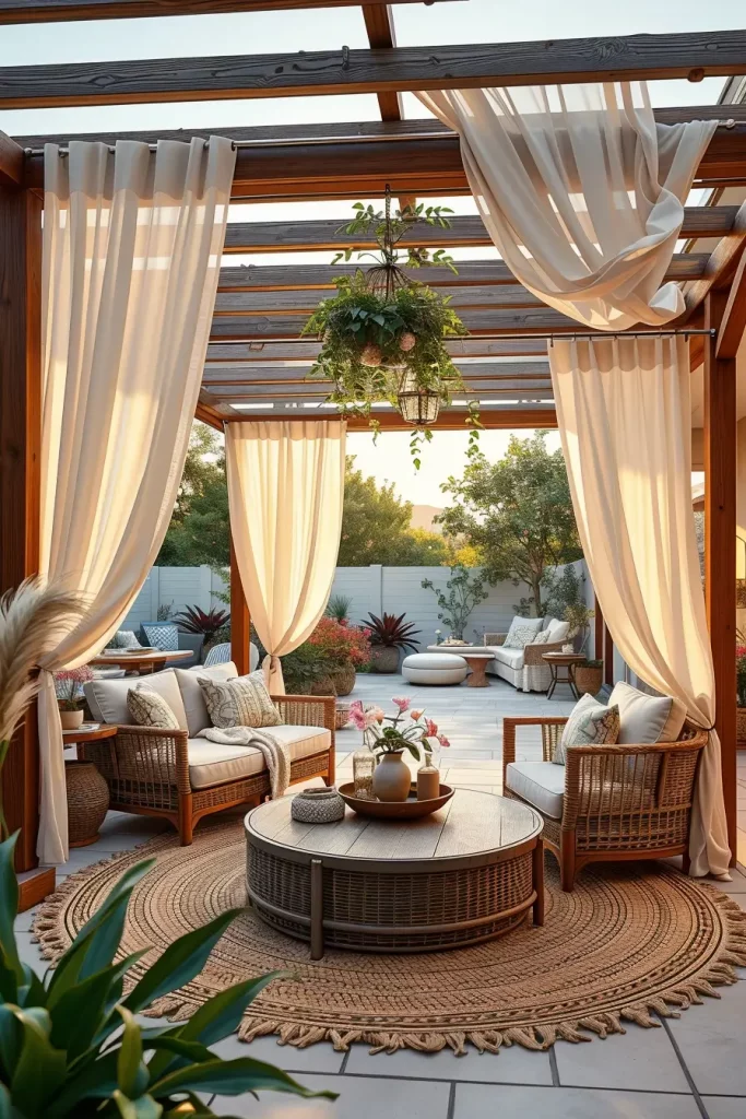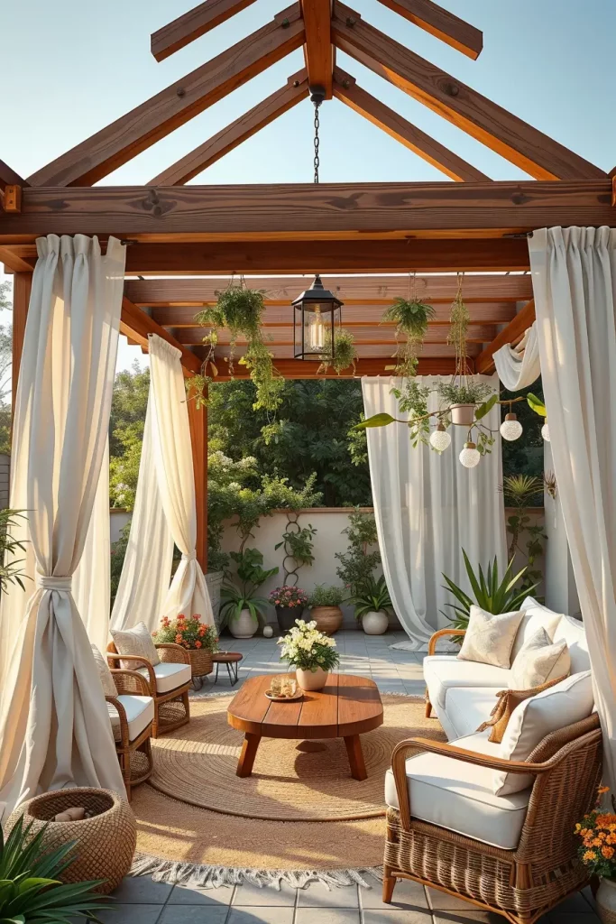 Elegant Pergola Patio Decor With Flowing Curtains