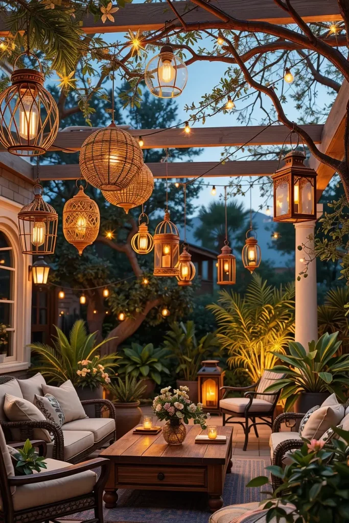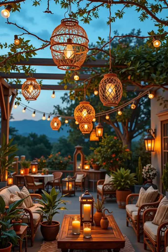 Lighting plays a huge role in creating memorable summer patio decor ideas 2026. I always believe that the right lighting can completely transform an outdoor patio once the sun sets. Hanging lanterns are one of the most versatile and visually striking lighting solutions for summer evenings.