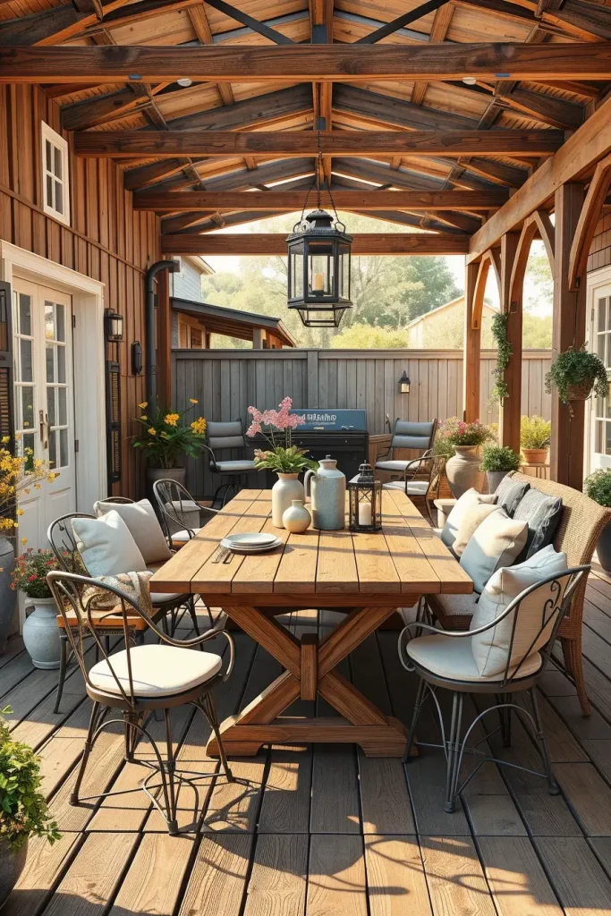 Rustic Farmhouse Patio Decor With Wooden Elements