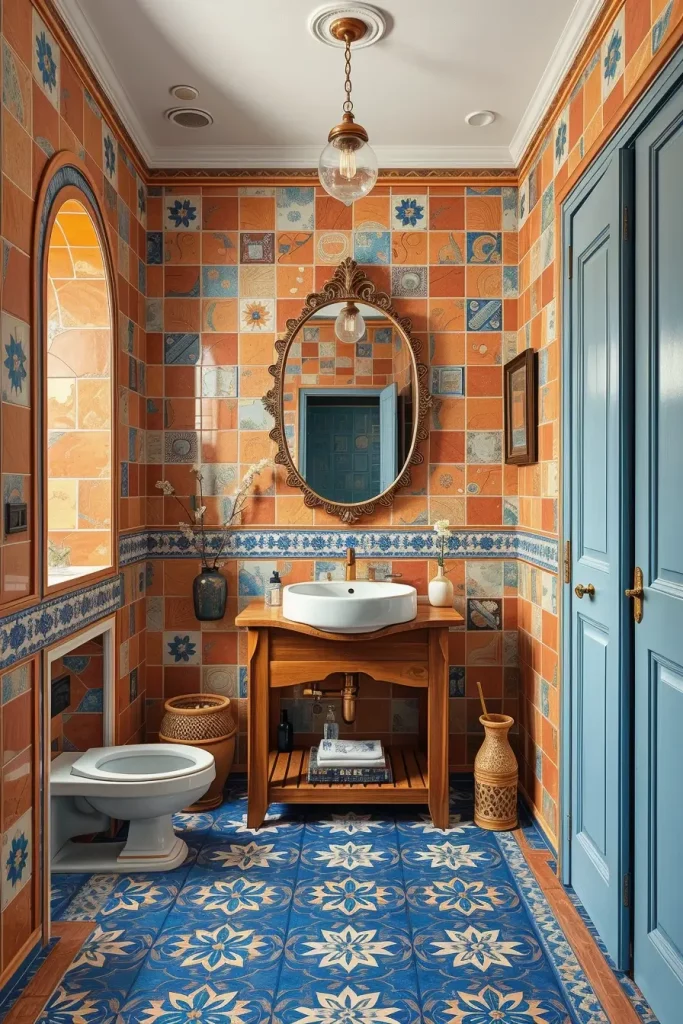 For me, tile is a key part of any bathroom’s style and nothing matches the look of artisan tiles. Whether it’s Moroccan zellige, hand-painted Spanish tiles, or encaustic cement patterns, these options offer rich narratives and tactile beauty. Because tiles are not exactly alike, your walls and floors get poignancy and character.
