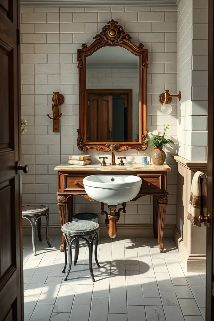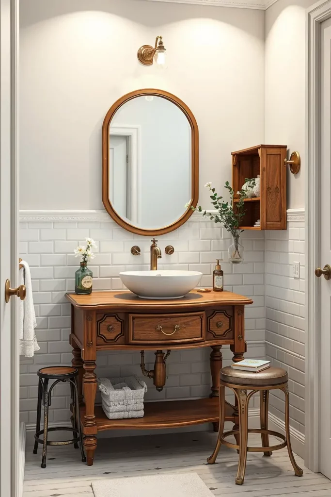 Having vintage items combined with artisan-made decor makes your bathroom design have more character. In every design I do, I let clients know that a mixture of old and new is what creates timelessness. Purchasing an antique vanity, a mirror with some age on it or an old stool can add warmth and feel right.