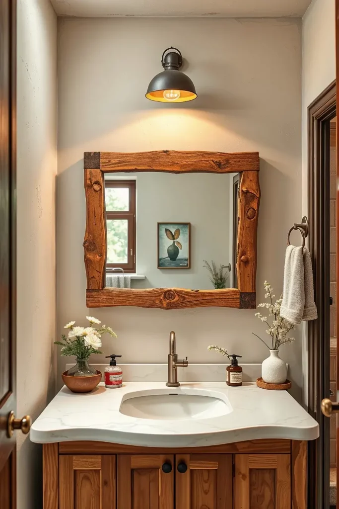 Custom-Made Bathroom Mirrors With Rustic Frames