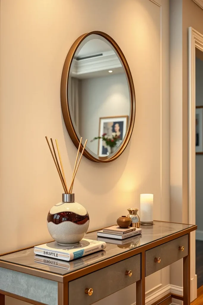 Electric diffusers plugged into timers or small reed diffusers can be placed on entrance consoles for my designs. Adding bergamot, sandalwood or lavender to the candles gives your space a luxurious feel. Ideally, the form of these devices should match the current style, whether it is a minimalist, traditional or high-gloss design.