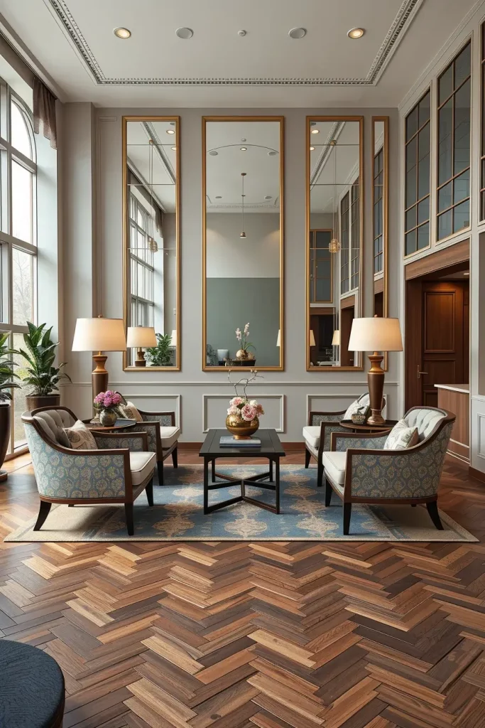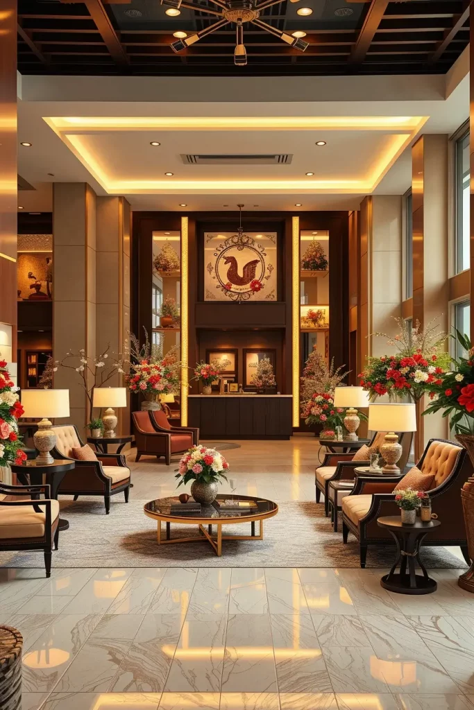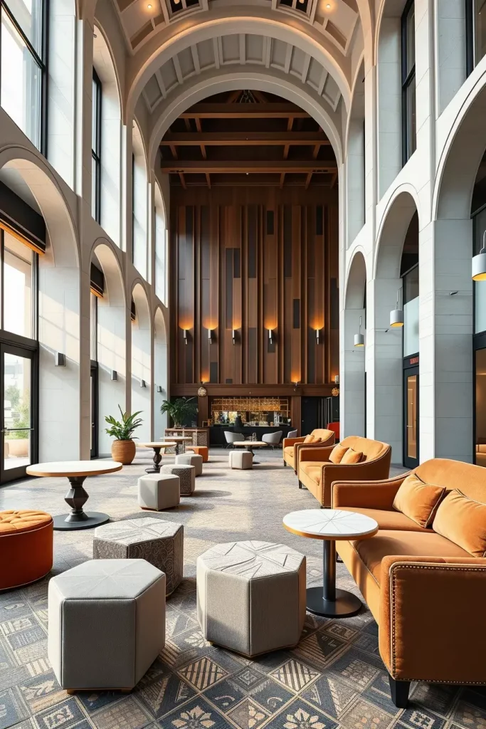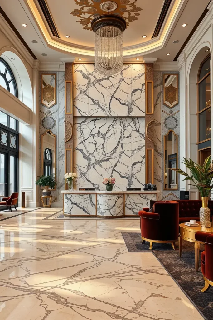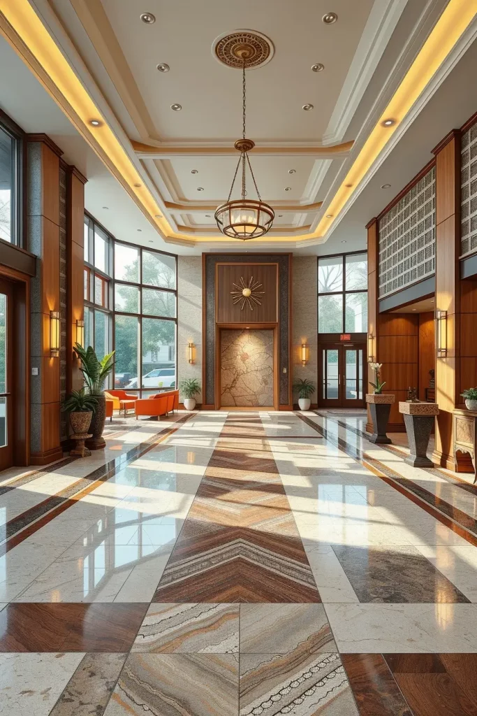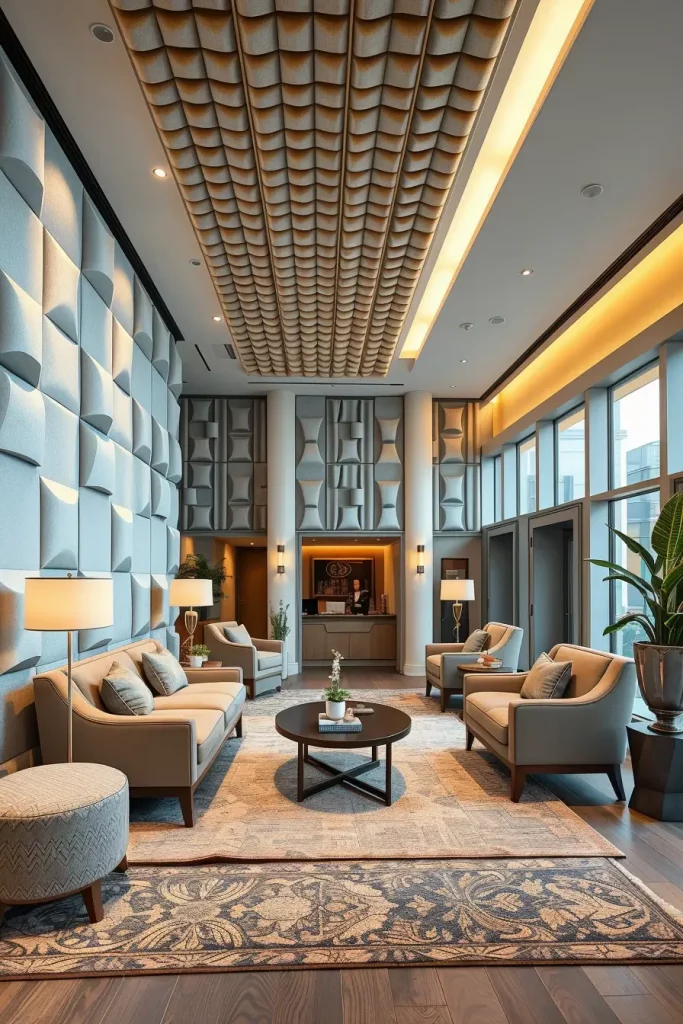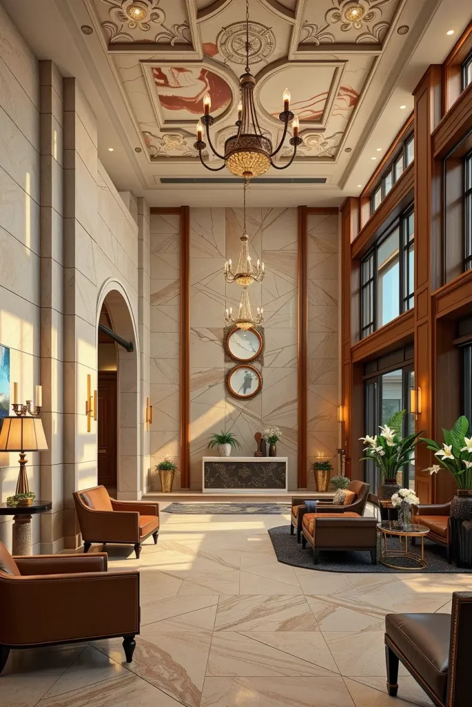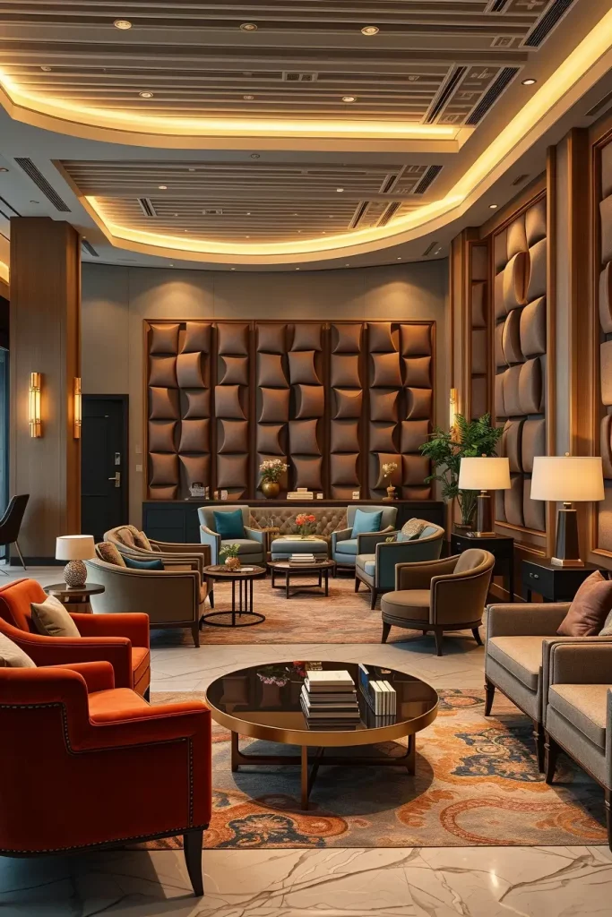 I love using Art Deco style for my inspiration in designing lobbies. Heavy curtains, lines drawn from geometry and elegant gold or silver accents are major parts of this decor which suits historic buildings or high-end hotels well. Applying Art Deco ideas to lobby design makes it seem elegant and glamorous.