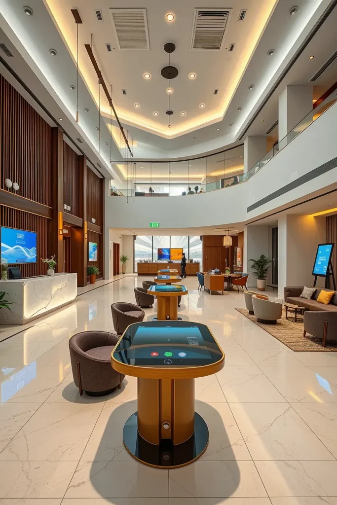Adding movable walls or digital screens lets the lobby change as needed during different times of the day or week.