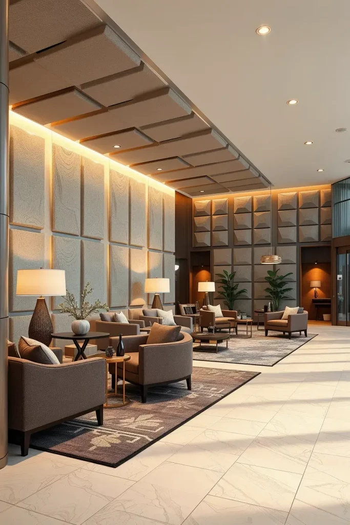 A very impressive-looking lobby can be brought down by poor sound quality. Having to hear loud noises is both trouble and uncomfortable when the roof is high. As a result, acoustic design must be just as important as looks in spaces like lobbies.
