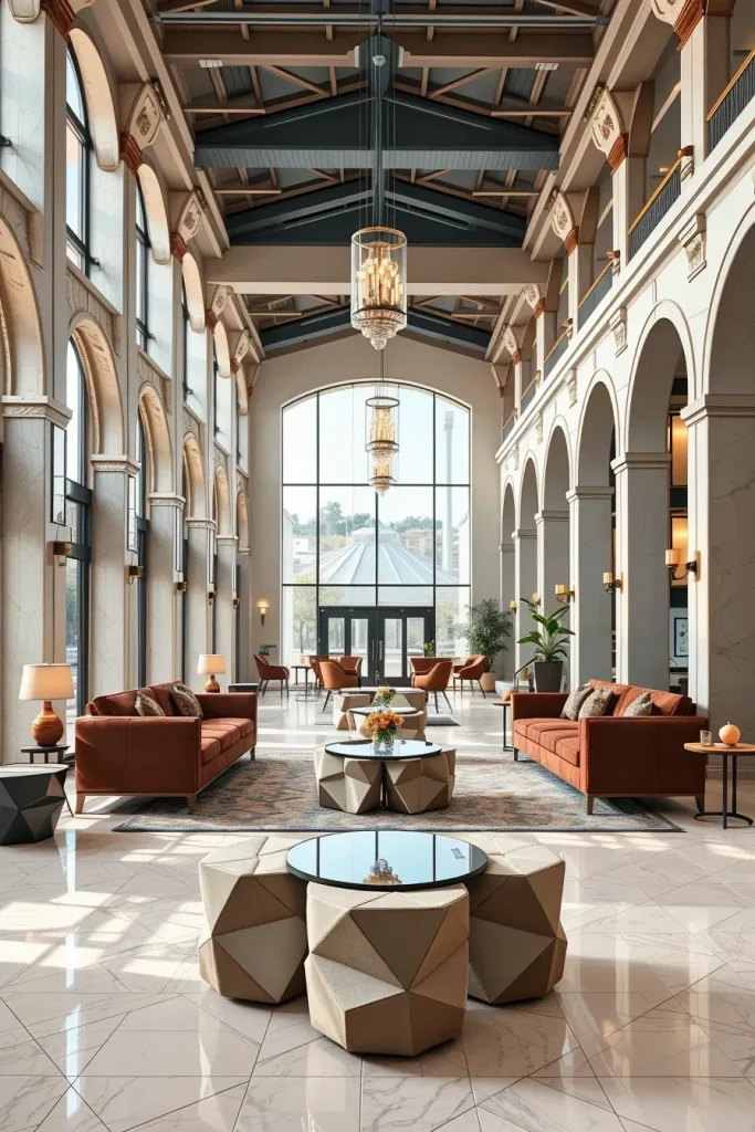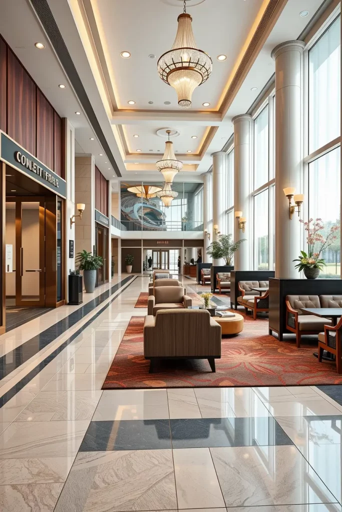 Having symmetry in a room helps your senses feel relaxed and brings everything together. Using symmetrical patterns is a frequent way for me to set up large lobbies and show that they are well structured. Whether it’s furniture placement, lighting design, or decor alignment, balance is key.