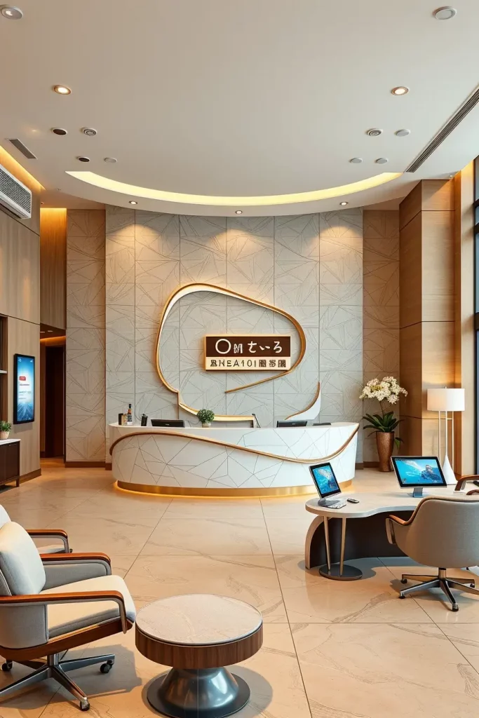 Surfaces such as natural wood, polished concrete and quartz give both lasting strength and an attractive appearance. Drawn corners tend to look gentler and backlit signs are great for making your brand stand out. A comfortable chair for each of your office workers is necessary. Work desks look better with dimension added by a colorful or patterned wall.