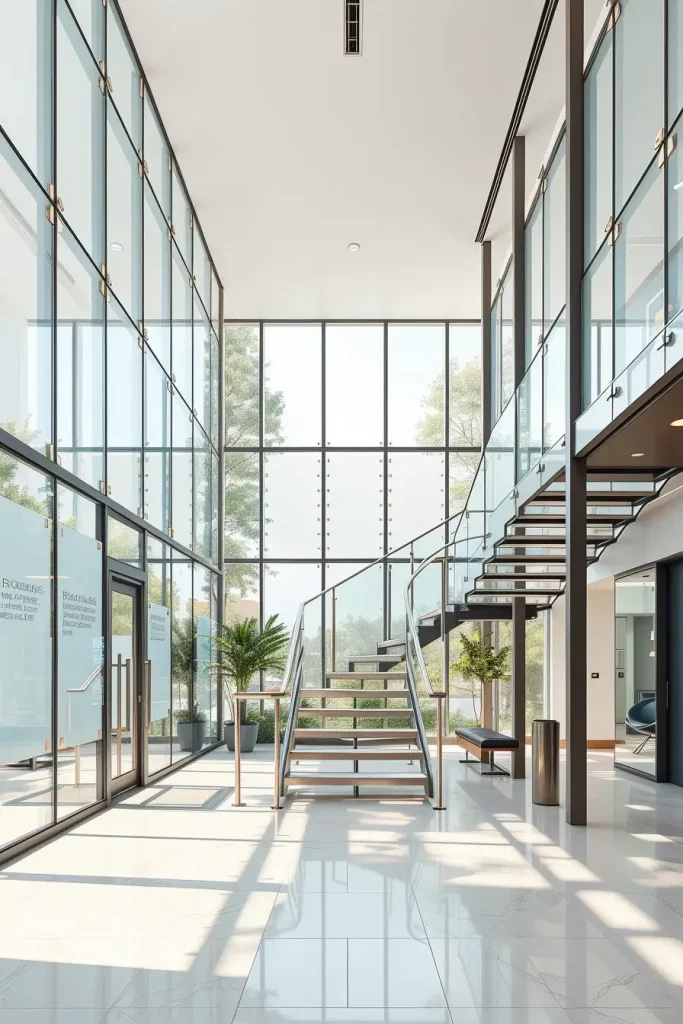I use low-iron glass frequently to prevent green tinting and I add windows with frosted or textured surfaces when I want privacy. With larger lobbies, glass allows each part to remain clear from the other without losing its sense of distinction—great for guiding guests in open design spaces.