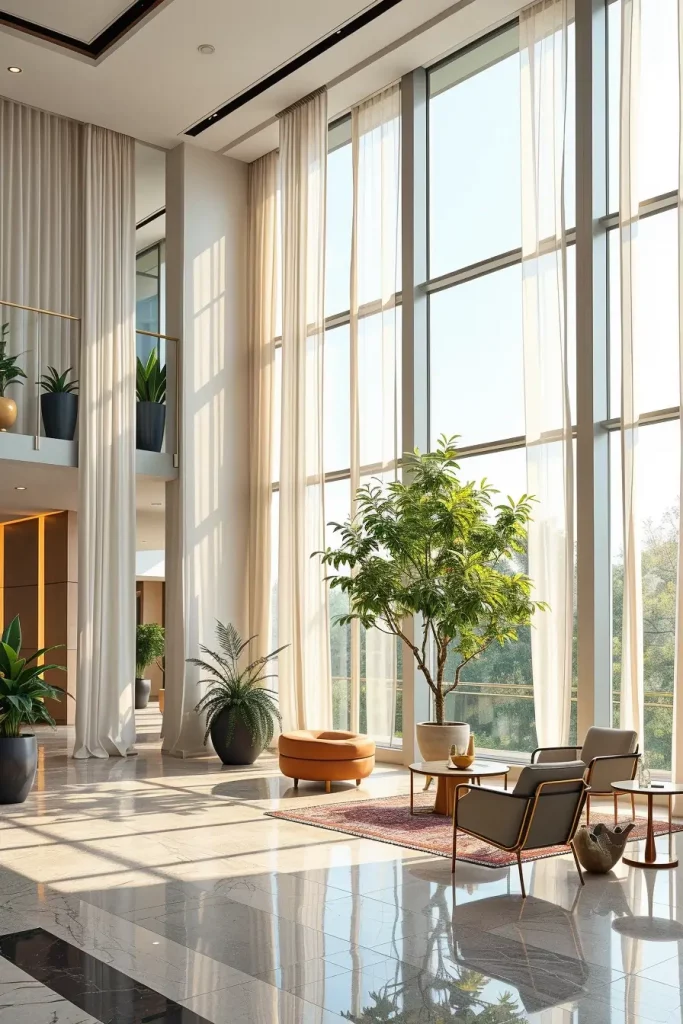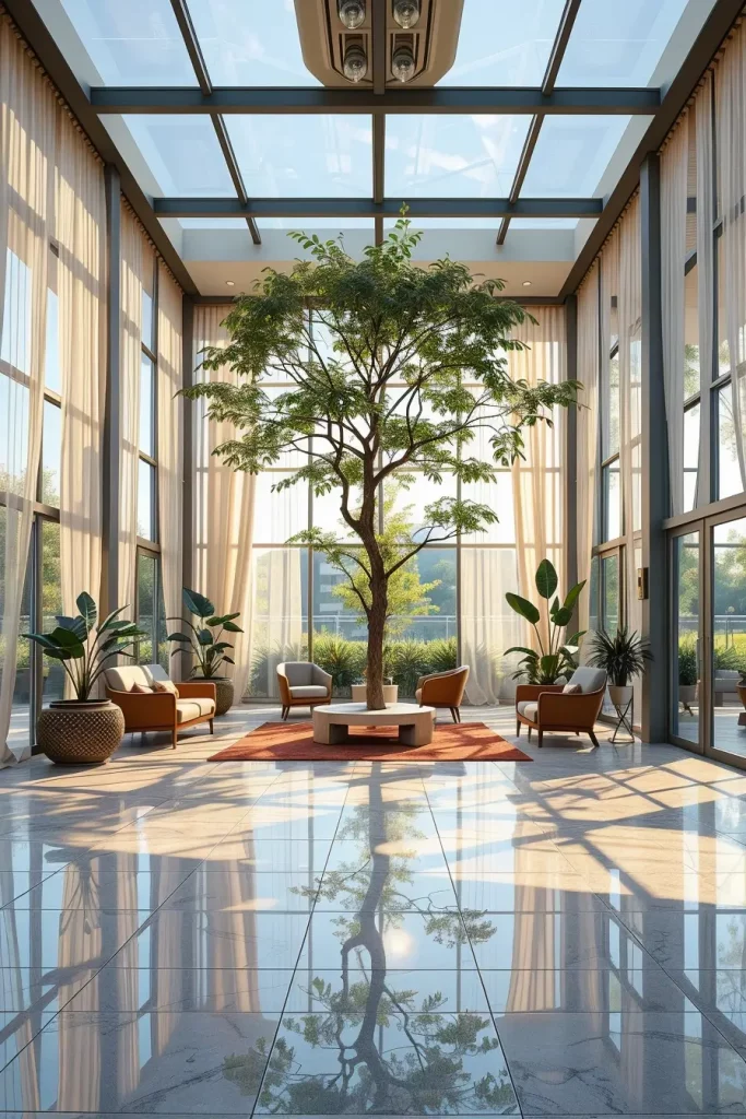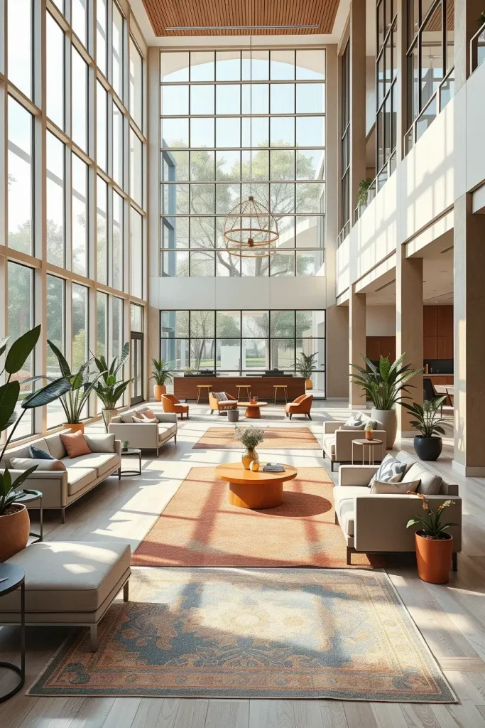 Natural light is the best way to make a lobby both vibrant and healthy. I put it at the top of my list when starting any design work. Having skylights and big windows brightens up everything in the space. It not only removes coldness from areas but also helps lower your electricity bill through the day.
