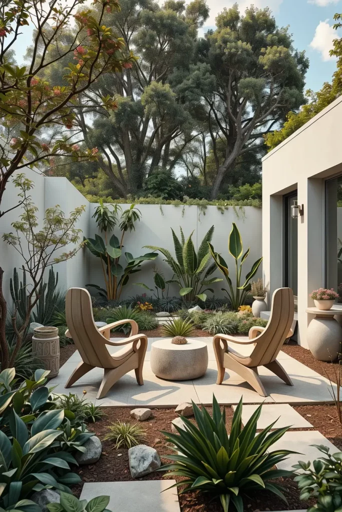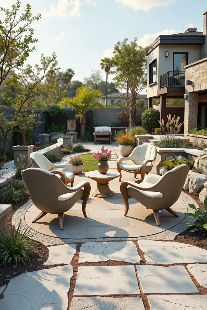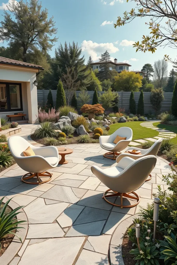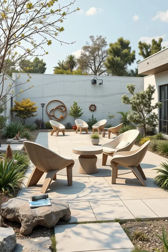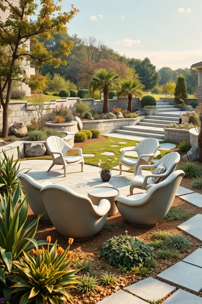 What I would add here is advice on pairing asymmetrical chairs with softer landscape elements to maintain harmony rather than visual tension.