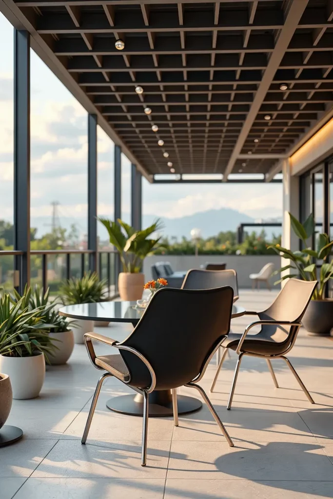 Aluminum and steel frames allow for thin profiles without sacrificing strength. I typically combine them with woven seating, padded cushions, or wood accents to soften the industrial feel while maintaining durability.
