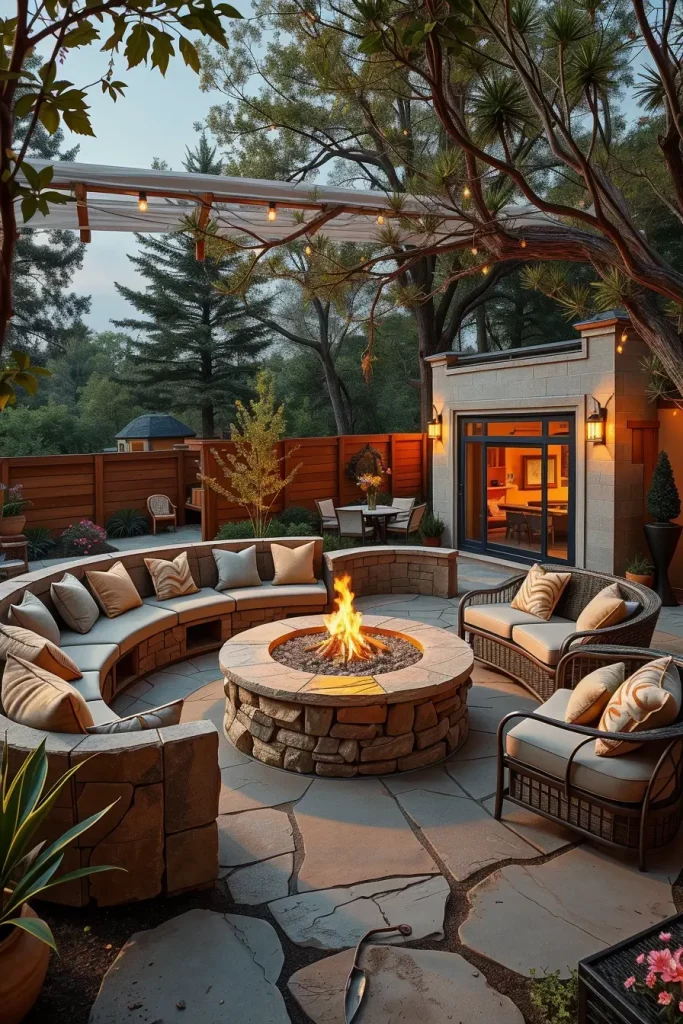 Artistic Fire Pit Seating Arrangements With Curved And Organic Layouts