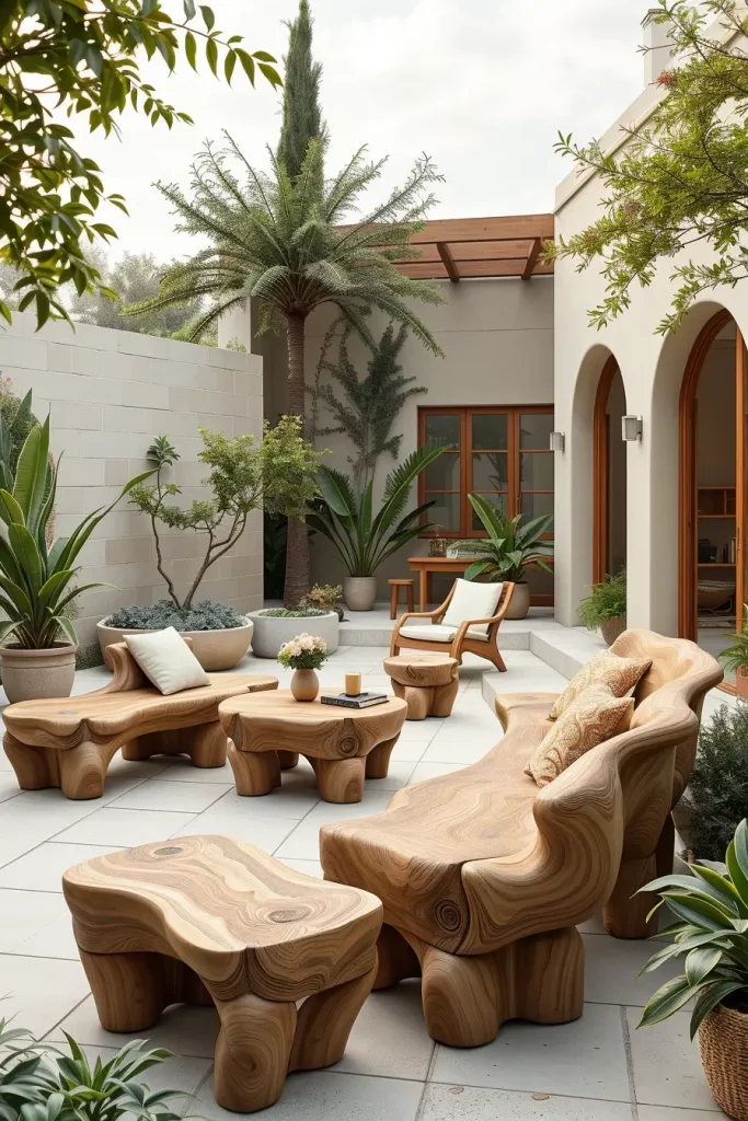 I find that nature-inspired design continues to influence outdoor furniture trends 2026, especially through the use of wood in its most expressive forms. These designs embrace imperfections, fluid lines, and organic shapes that create a calming and grounded atmosphere.