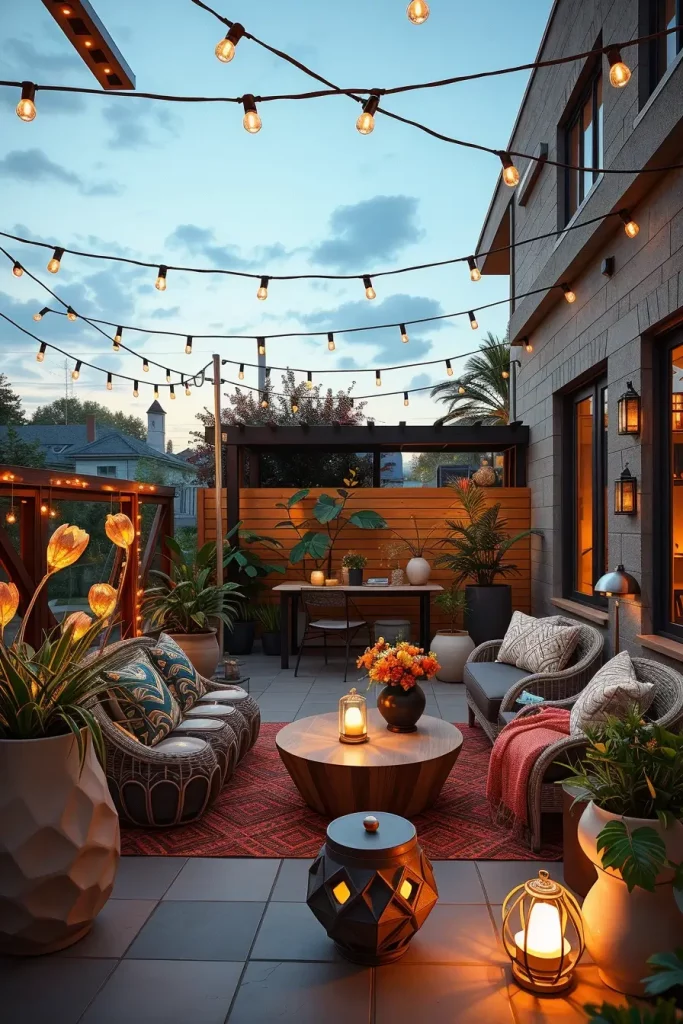 In my approach, I layer different types of lighting, including floor lamps, string lights, and встроенные светильники, to highlight textures and shapes. I complement this with декоративные элементы such as planters, rugs, and cushions that echo the curved and organic forms of the furniture. This creates a cohesive and visually engaging space.